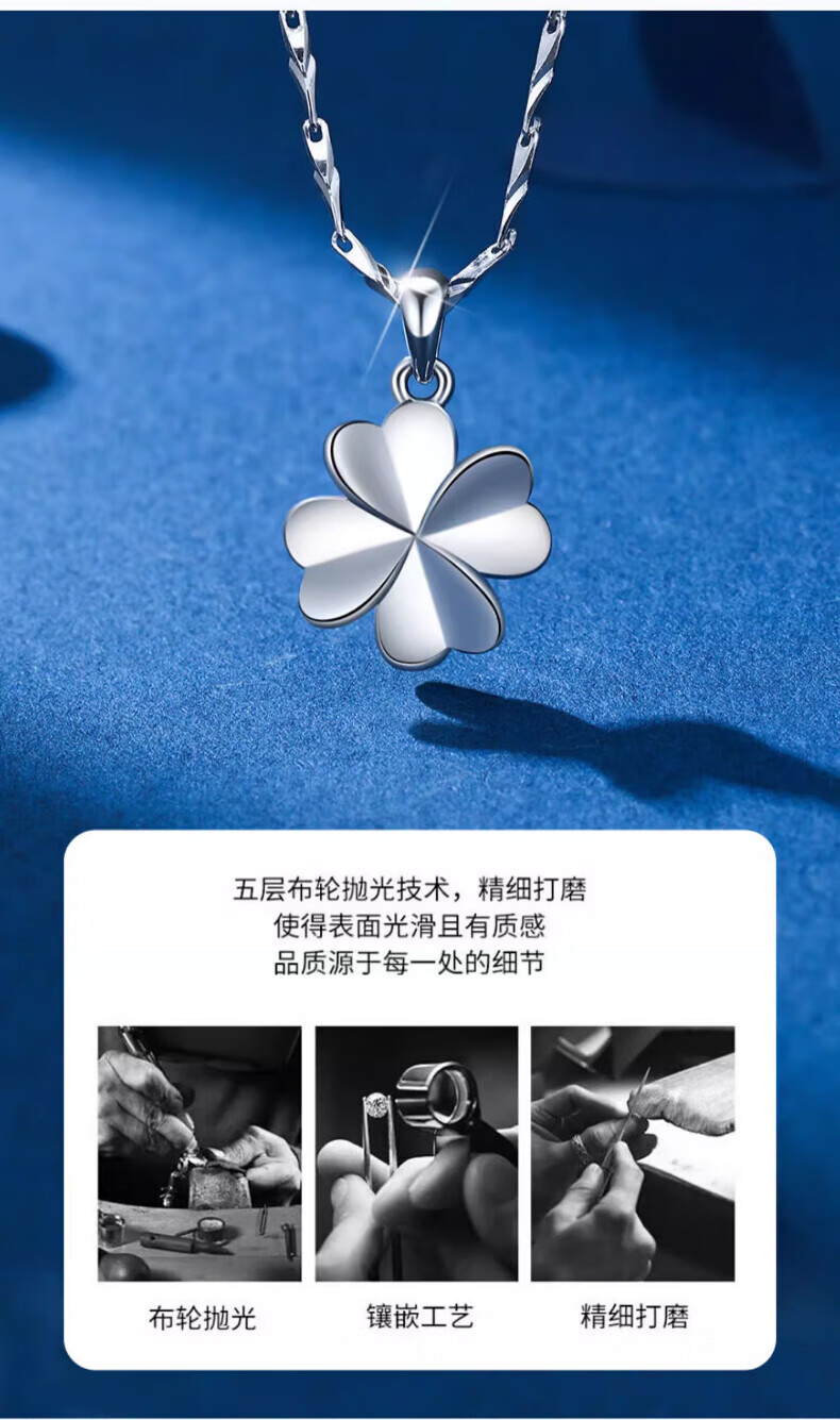 China Gold Pure Silver Lucky Four-Leaf Clover Necklace for Women 2025 New Clavicle Chain Pendant Practical Birthday Gift for Girlfriend Classic Brand Gift Box *Shipping from Yakura* Same Day/Next Day Delivery