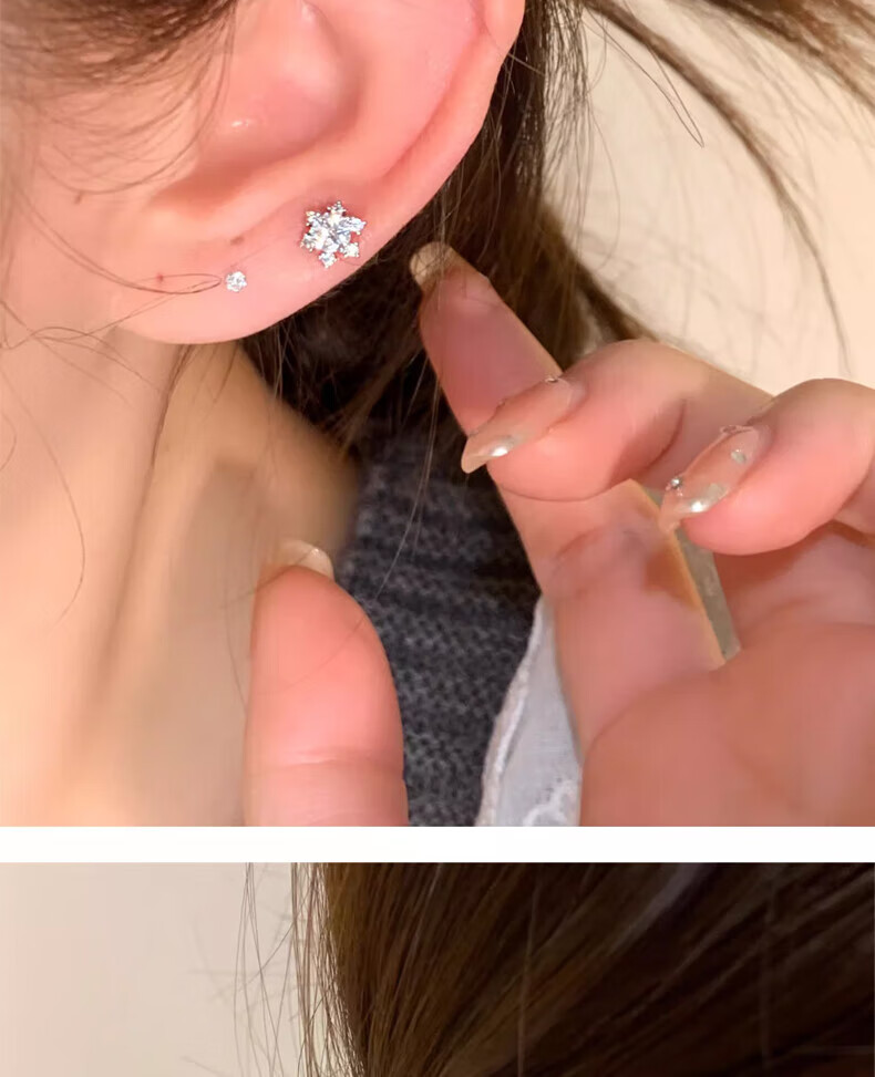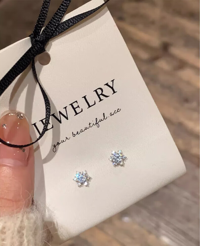 Jiuvia 999 pure silver snowflake earrings for women 2025 new versatile zircon earrings for sleeping, no need to remove, hypoallergenic ear bone nails S999 pure silver snowflake earrings gift box