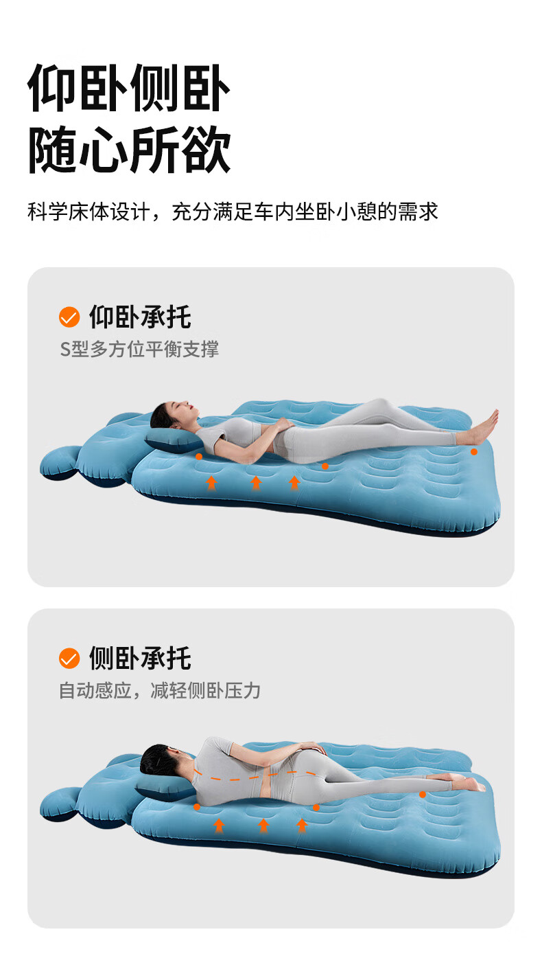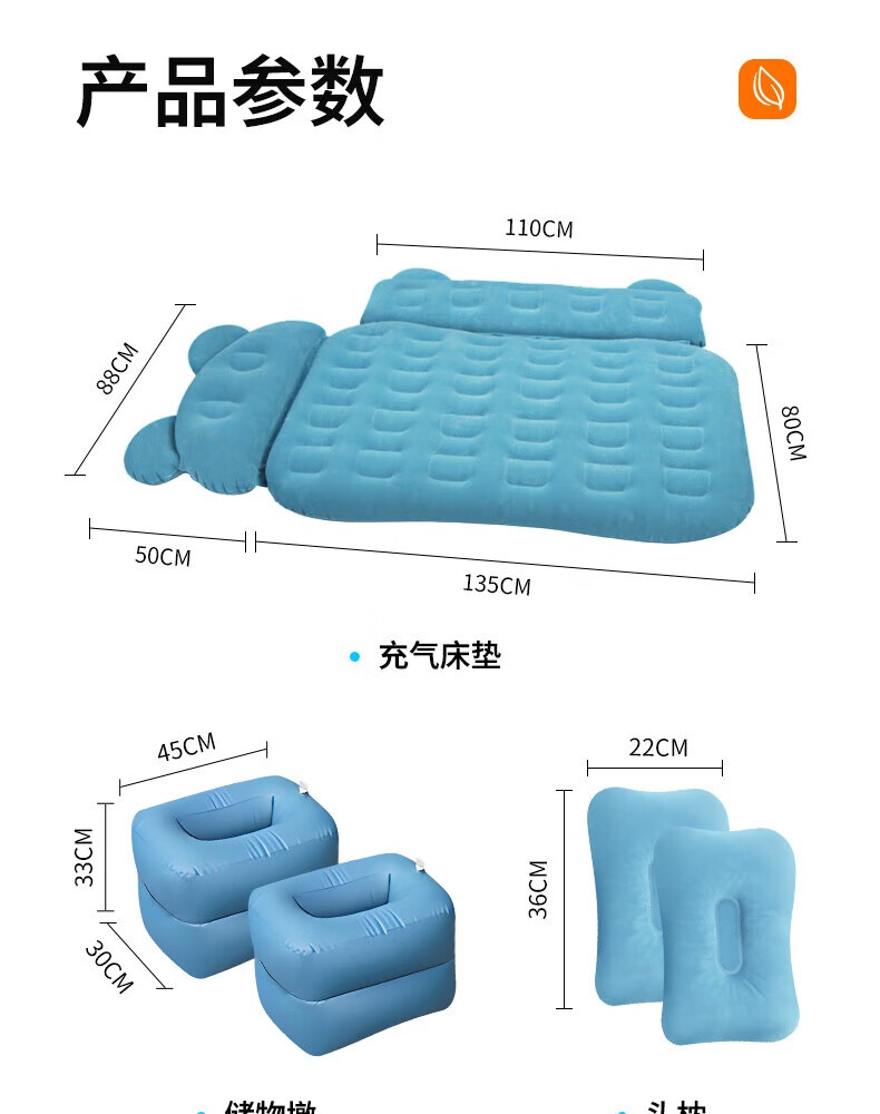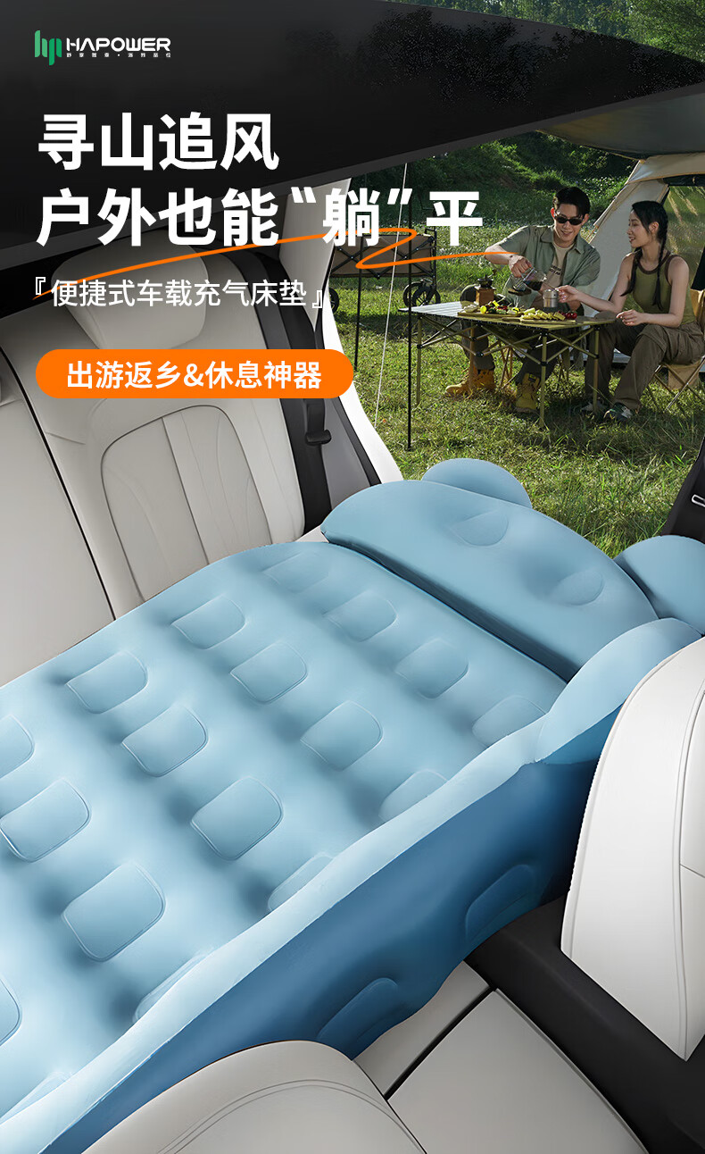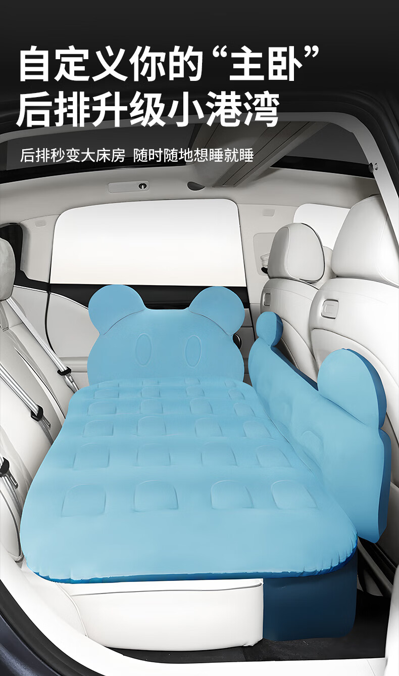 HAPOWER Car Rear Sleeping Mat Car Inflatable Mattress Children's Car In-Car Sleeping Artifact Special for Adults SUV Car Greenland Hotel Couch Enlarged Side Block + Cartoon Head Block Comes with Charging Pump + Storage Pier + Headrest