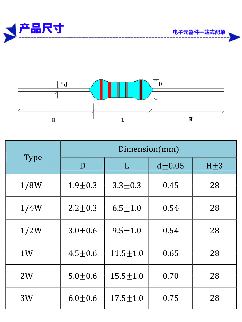 1W metal film resistor element 1% color ring 1K2k10K100K47K470 10 ohm 100/120 ohm m 1K1W (50 pieces)