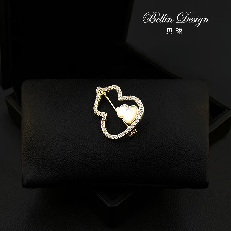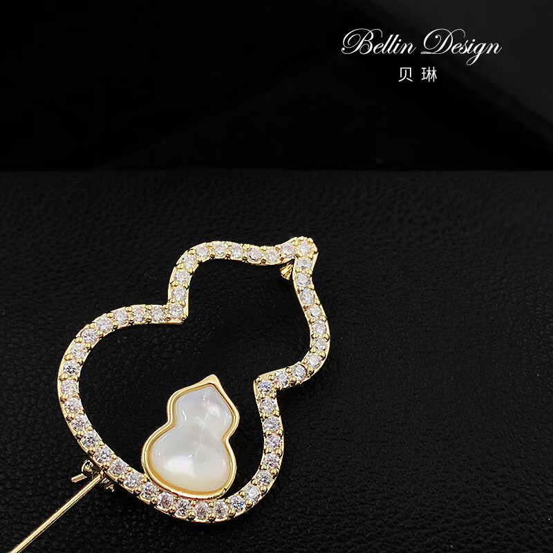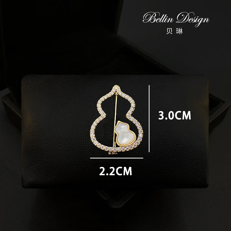 QUAMER Gold Store Auspicious Ruyi Small Gourd Brooch Women's Fritillary Decorated Corsage Fashion Design Suit Gold