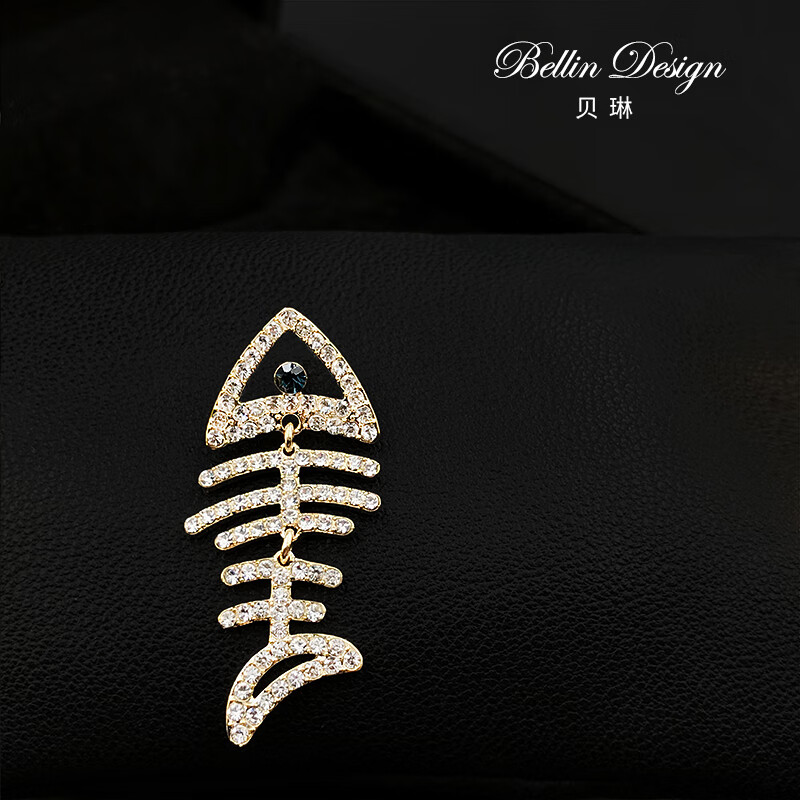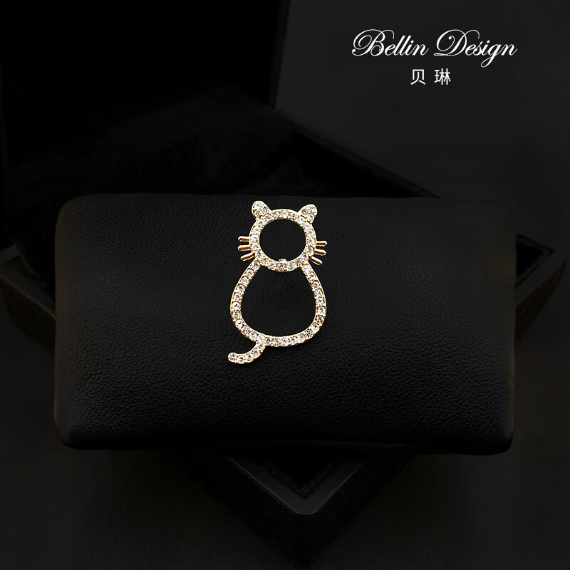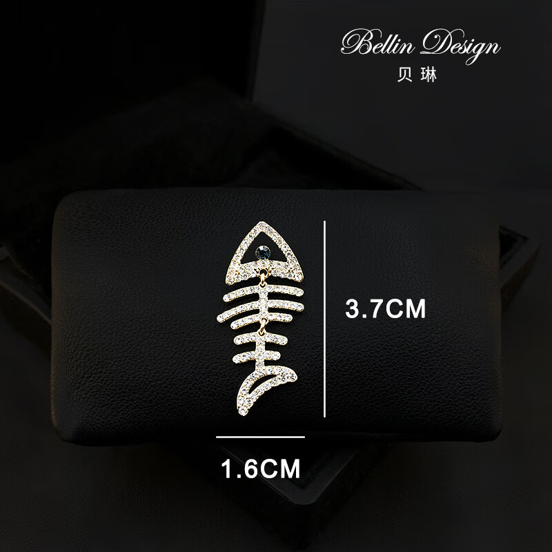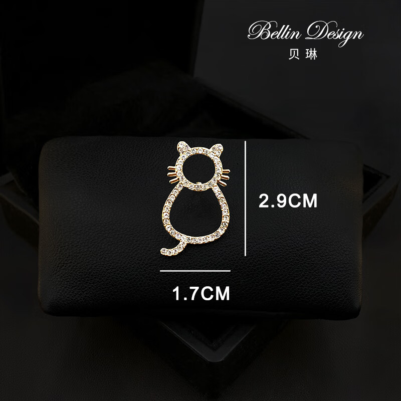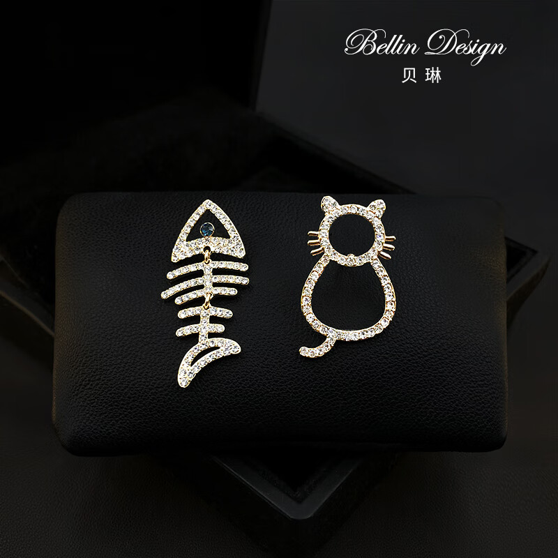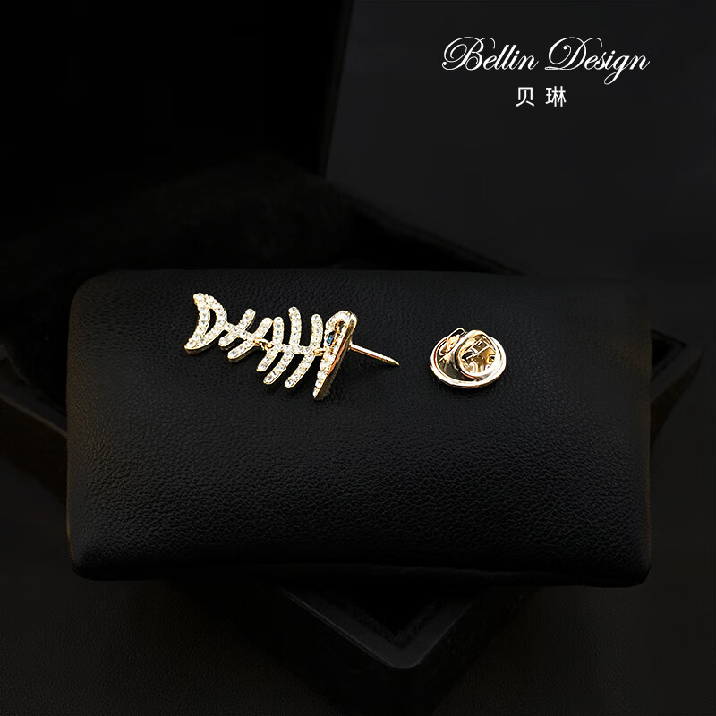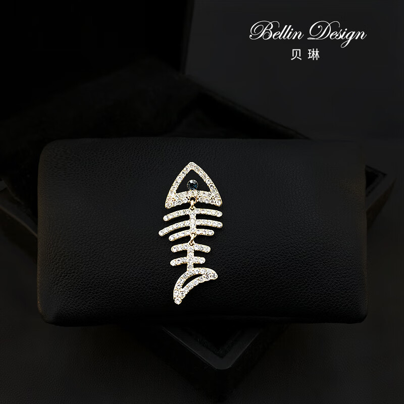 QUAMER Gold Store Personalized Cat Fishbone Brooch 2025 New Trendy Suit Women's Accessories Fixed Clothes Cat