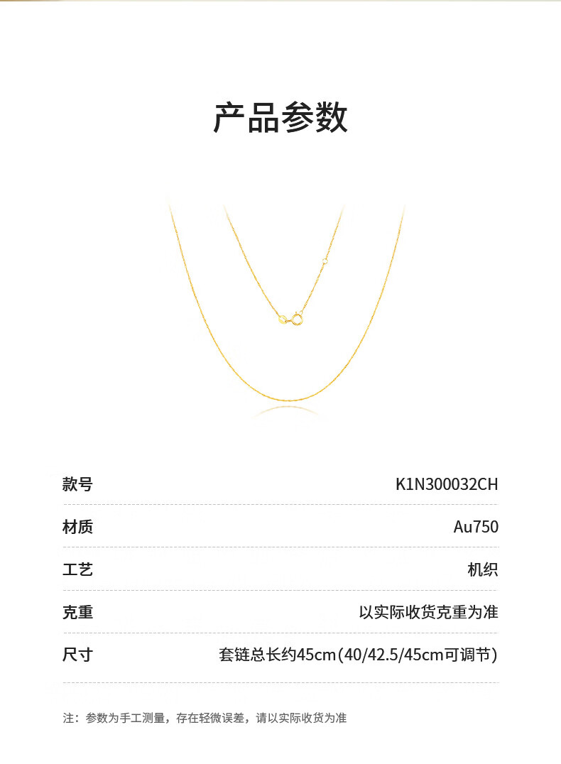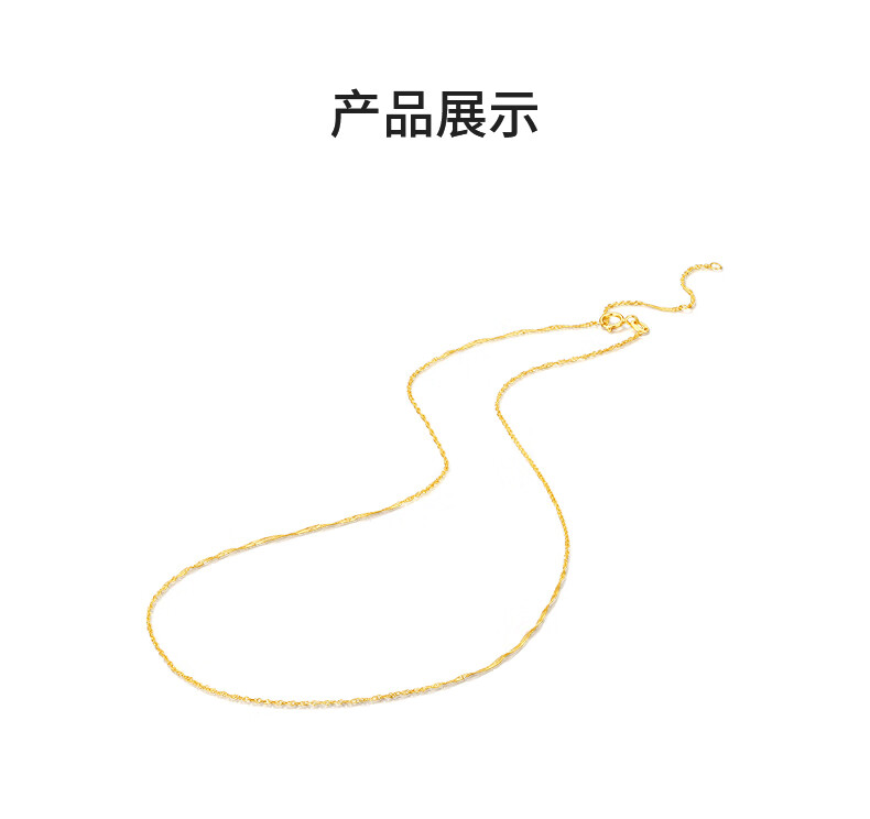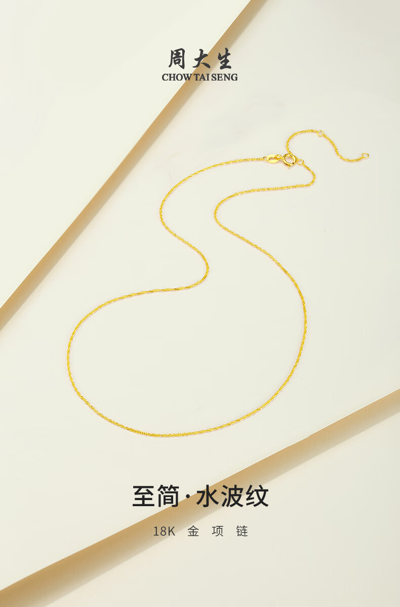 Chow Tai Sang yellow 18K gold necklace, fashionable and versatile, colored gold clavicle neck chain, water ripple plain chain, birthday gift for girls, yellow 18K gold necklace