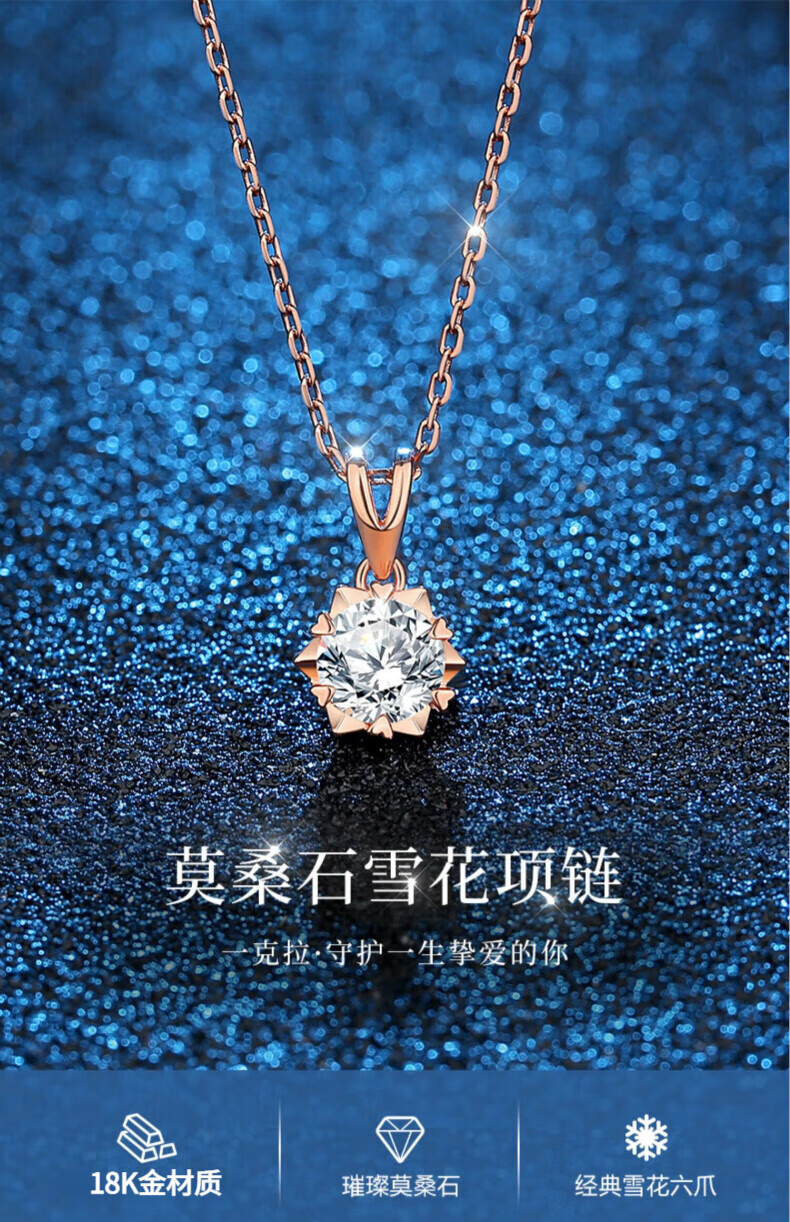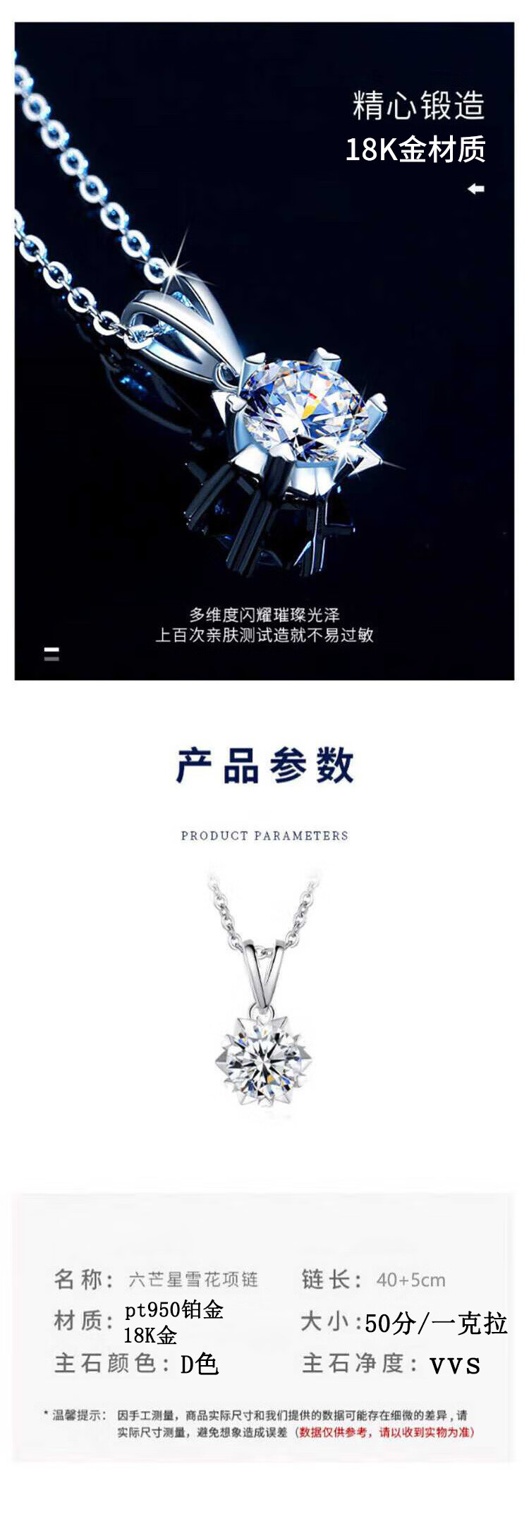 Grace Girl Platinum One Carat Moissanite Necklace Fashion Jewelry Birthday Practical Heartfelt Gift for Girlfriend and Wife Platinum 50 Points Moissanite Snowflake Necklace