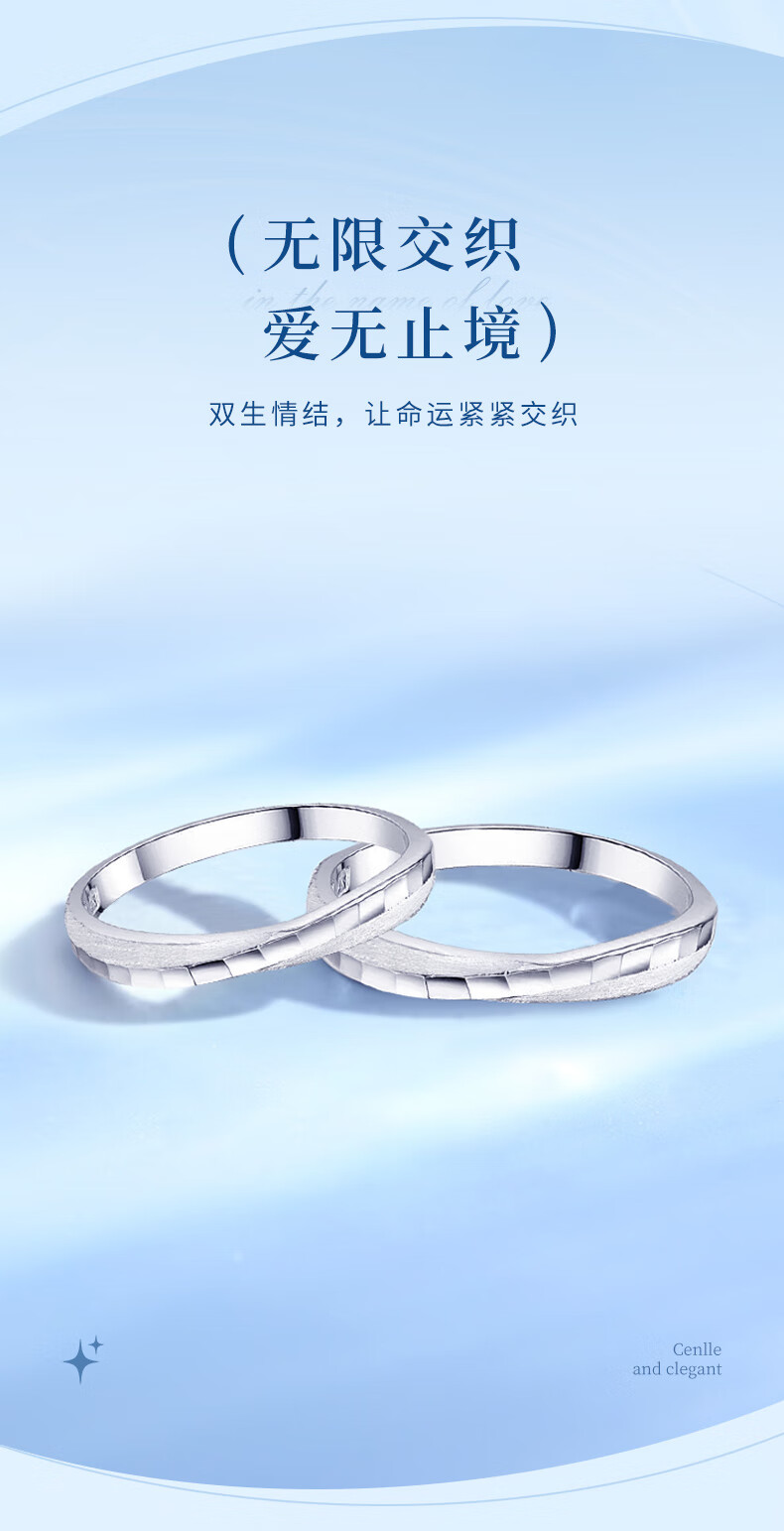 CHINA GOLD PT950 Platinum Couple Ring Simple Men's and Women's Twin Ring Valentine's Day Birthday Gift for Girlfriend and Wife Platinum Twin Knot Ring - Women's Model About 1.9g Medium Gold Gift Box