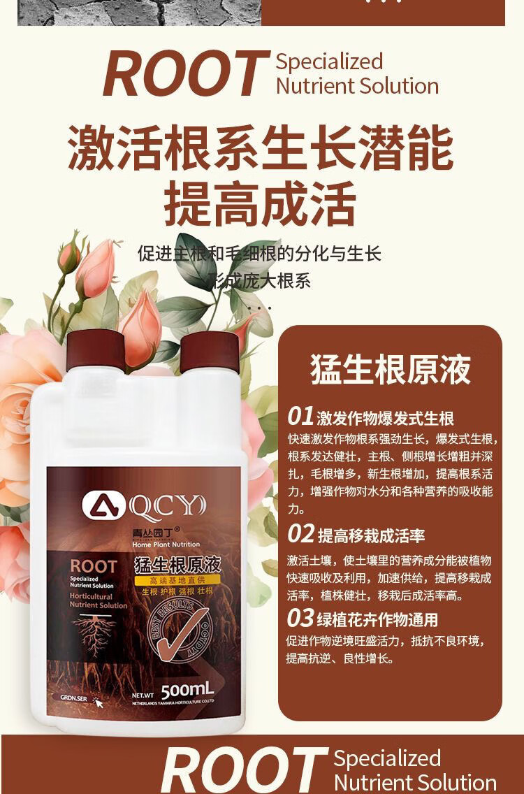 Green Cong Gardener's vigorous root blasting mother liquid original solution for rooting, multi-root fish protein transplanting, universal plant rapid rooting, Green Cong Gardener's fierce rooting (500 ml bottle)