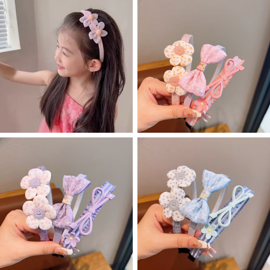 Bow hair accessories, girls' hairbands, women's non-straight children's hairpins, 2025 new girls' hairbands, TS147 pink series hairbands, 3-piece set