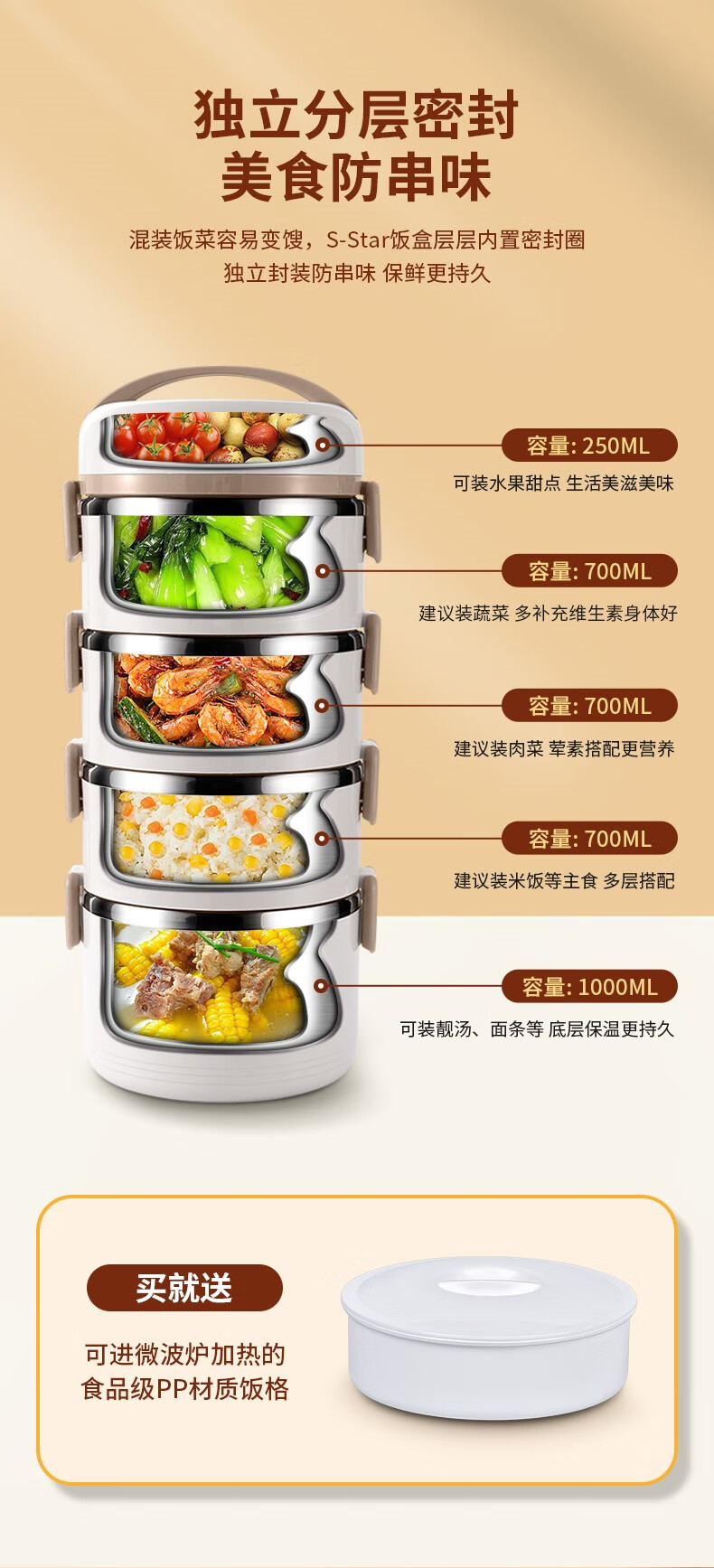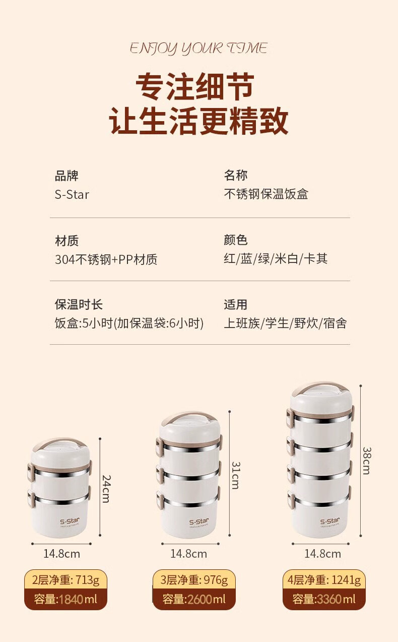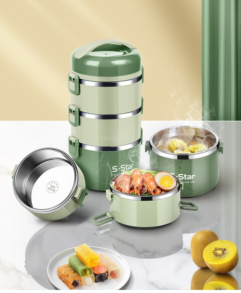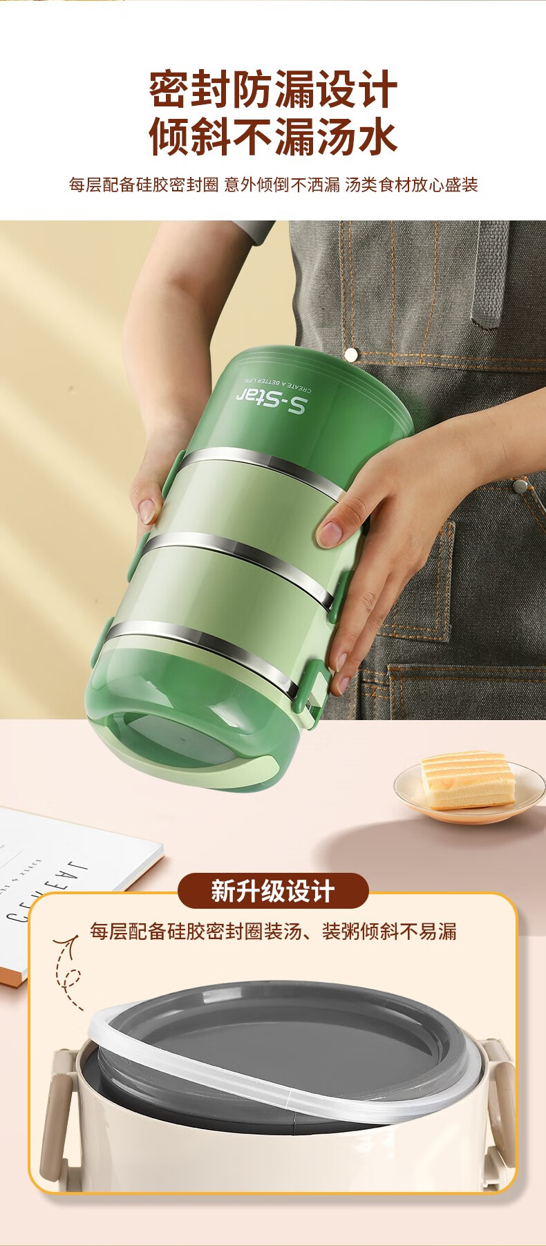Tuojin imported quality 304 stainless steel multi-layer insulated lunch box from Germany, portable lunch box for office workers and students, super upgraded snap-on green 4-layer bag + upper cover layer +