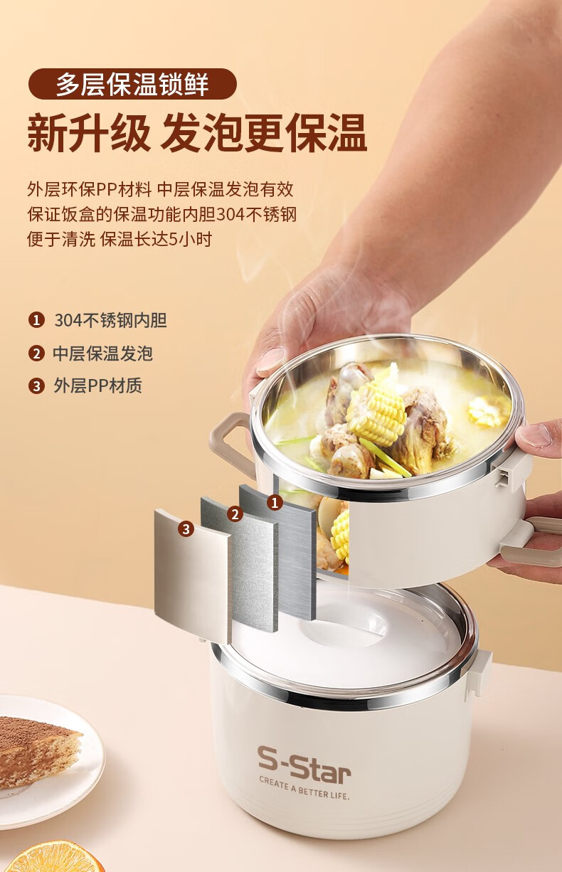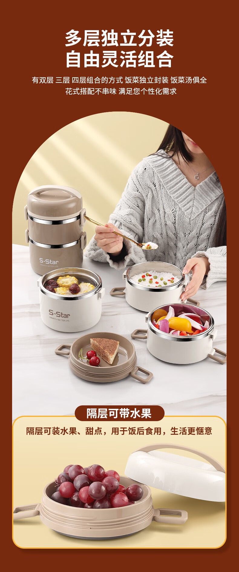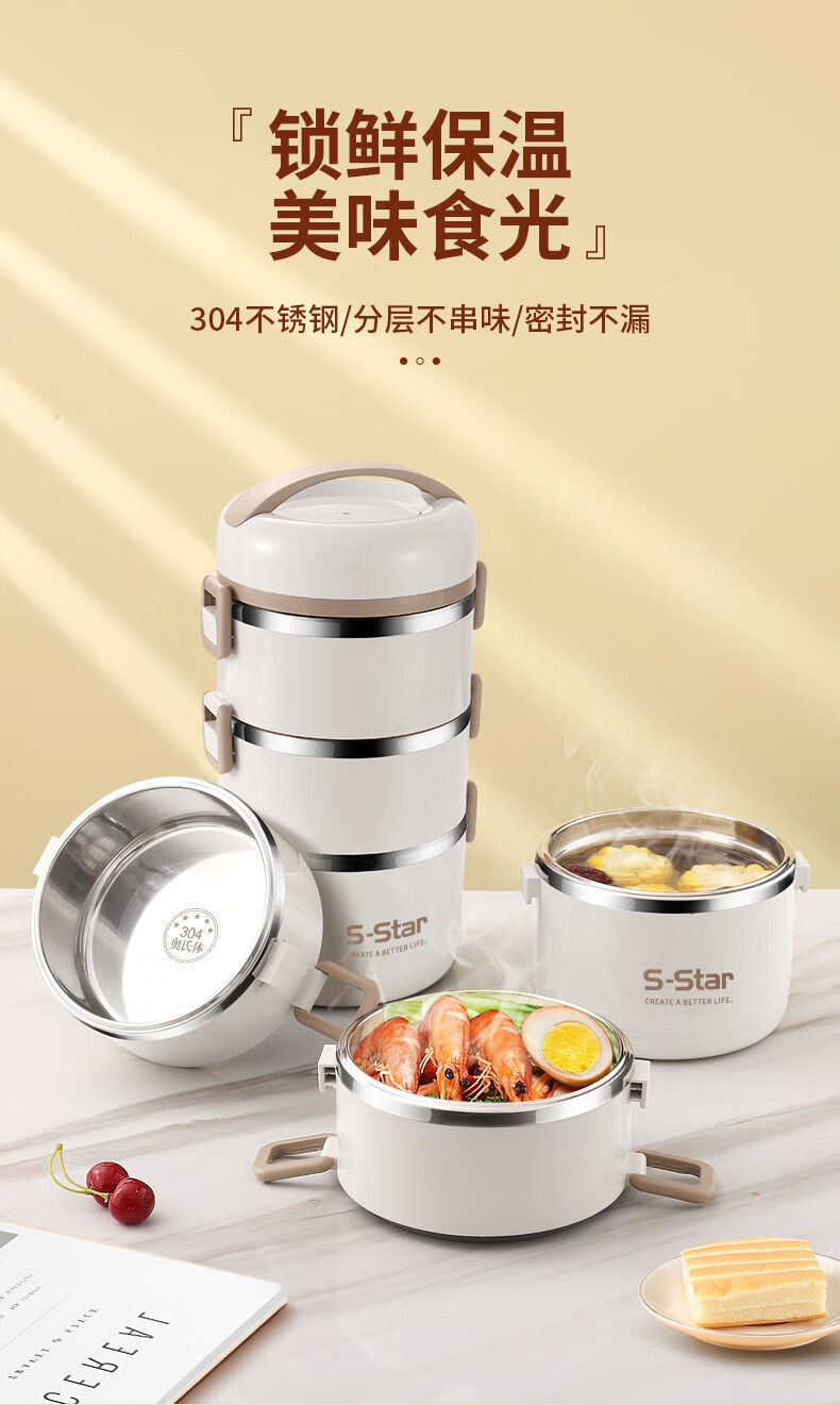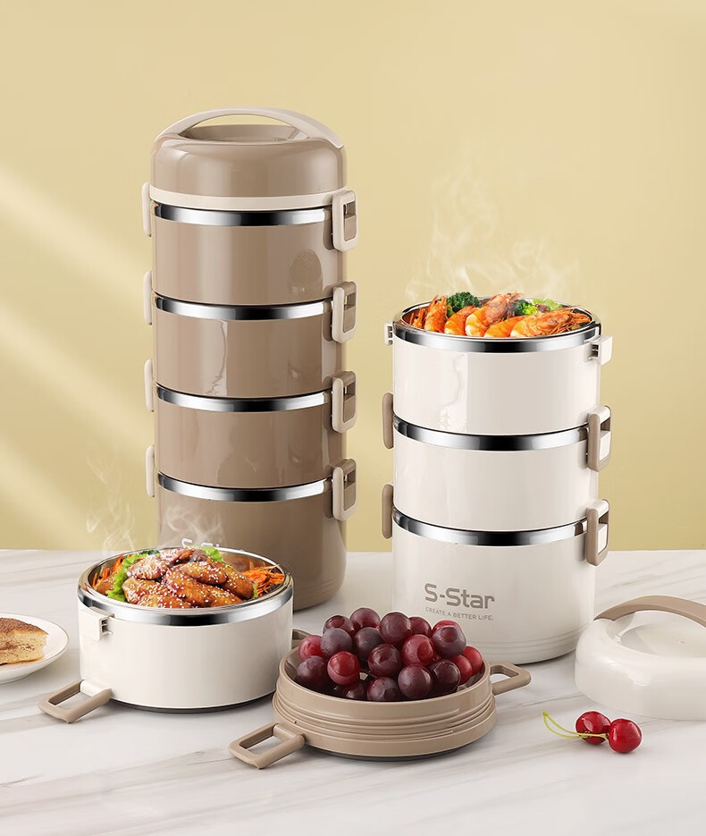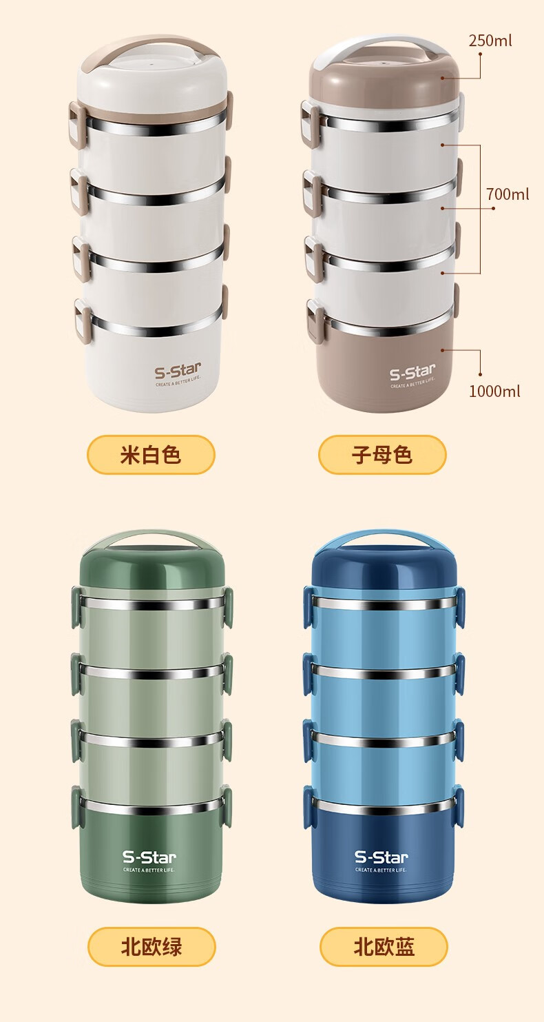 Tuojin imported quality 304 stainless steel multi-layer insulated lunch box from Germany, portable lunch box for office workers and students, super upgraded snap-on green 4-layer bag + upper cover layer +