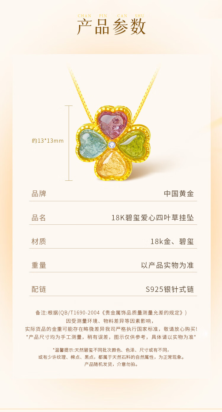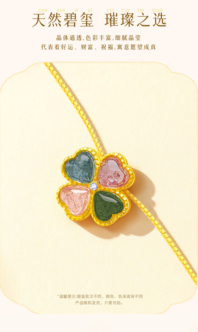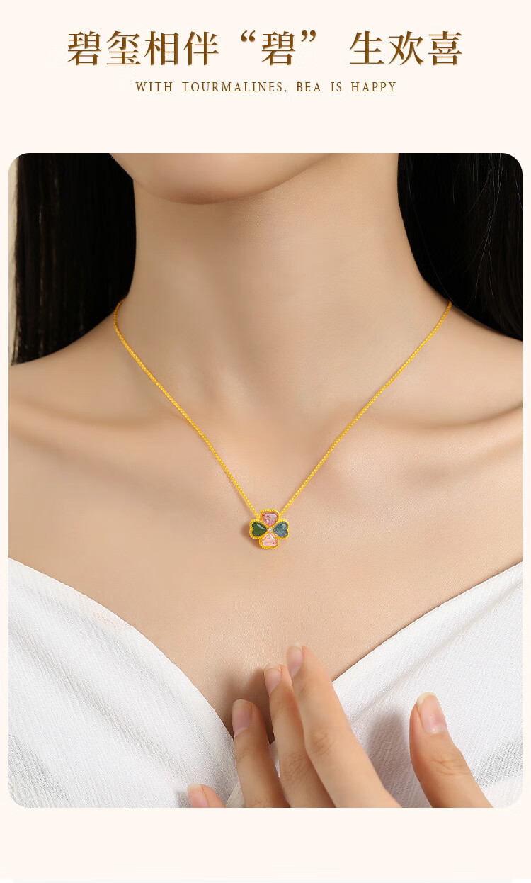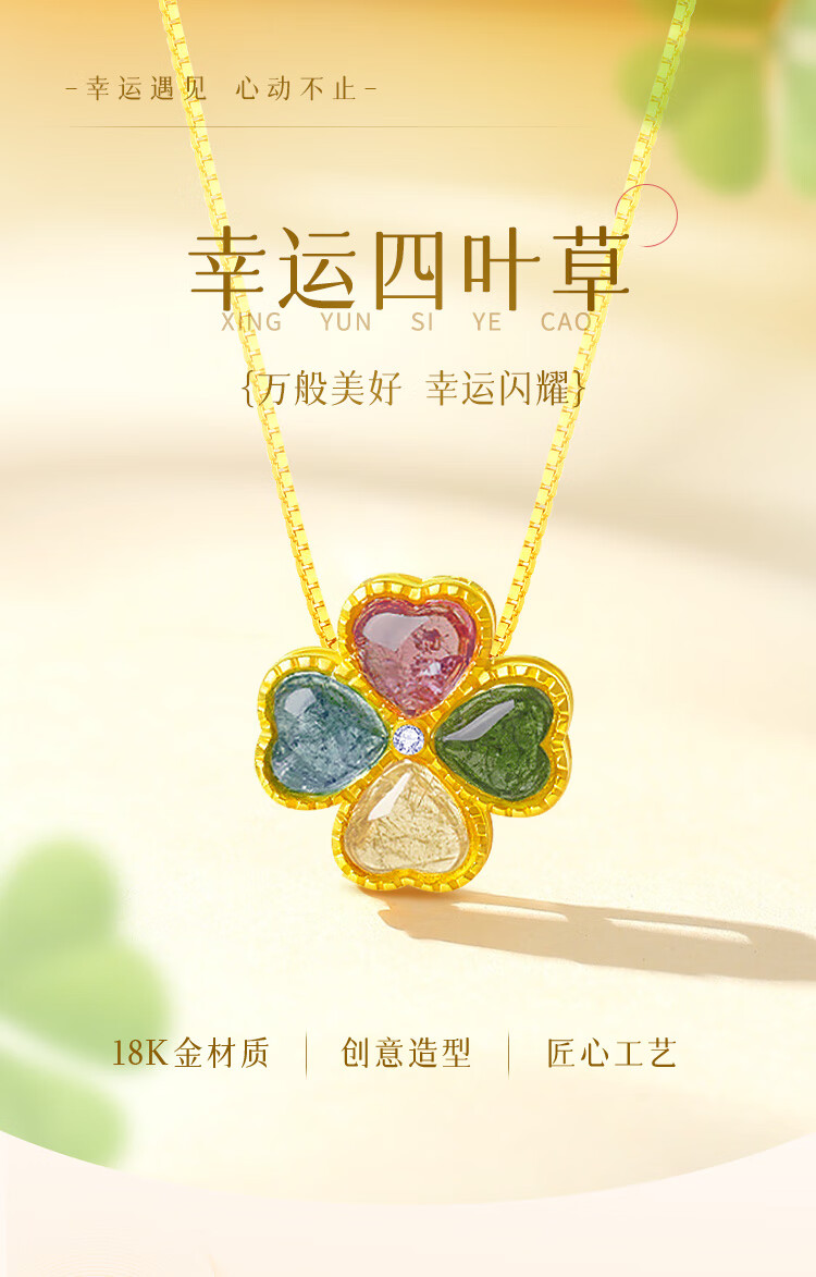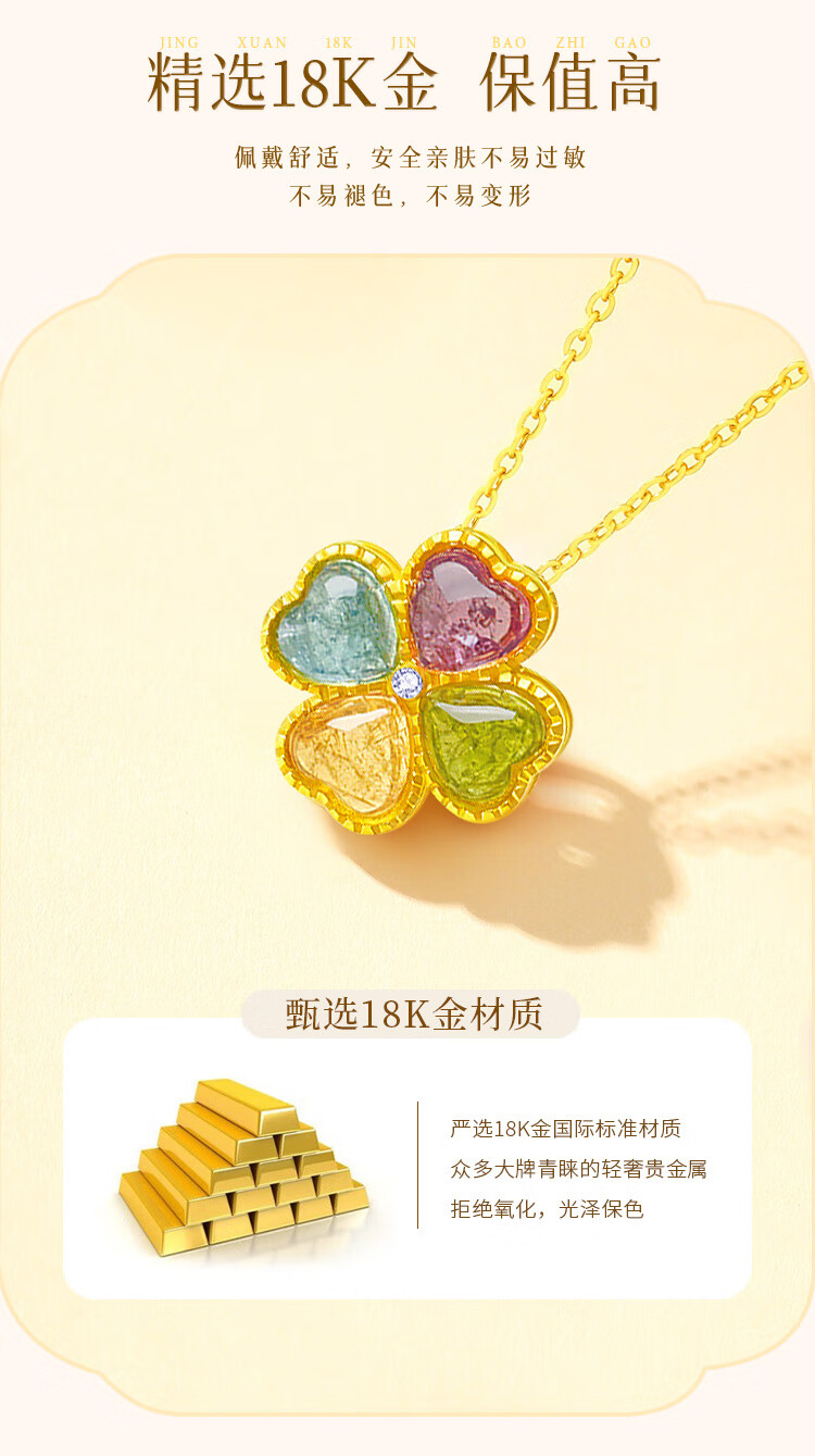 China Gold (CHINA GOLD) four-leaf clover 18K gold necklace female tourmaline love pendant birthday gift for girlfriend and wife Jingsuda-18K tourmaline pendant gift silver chain