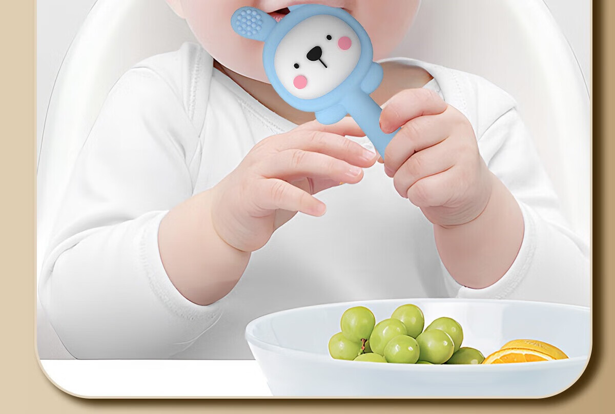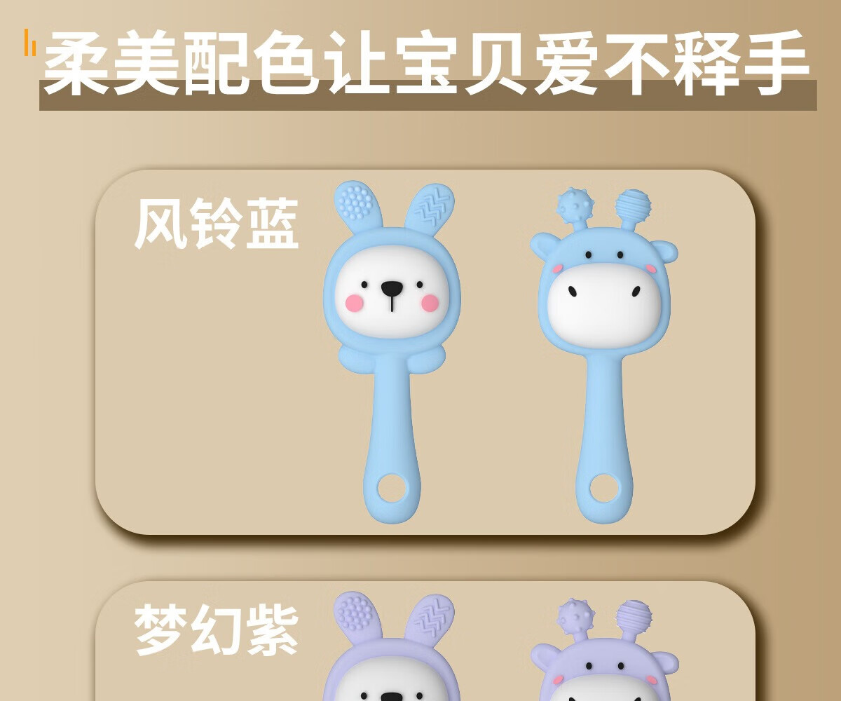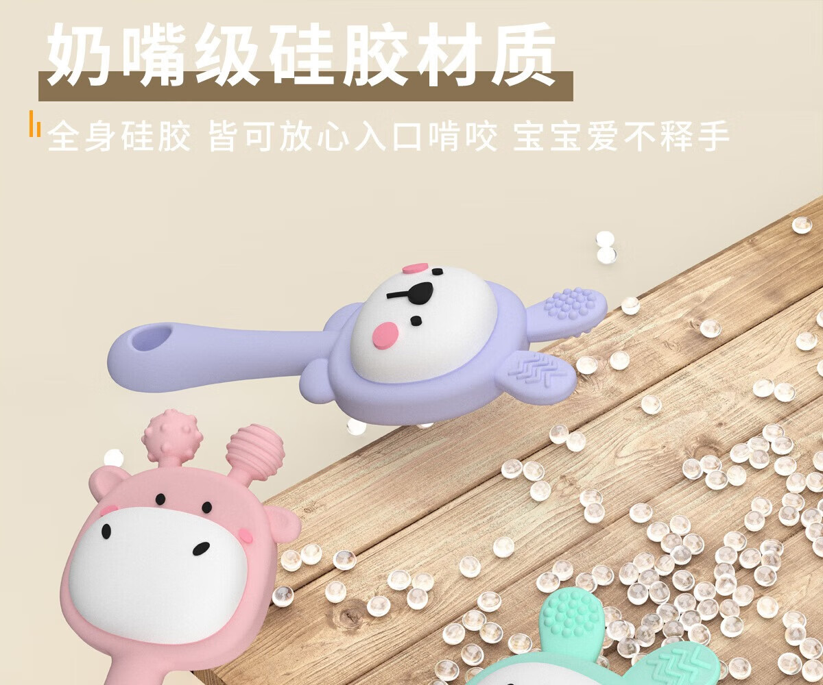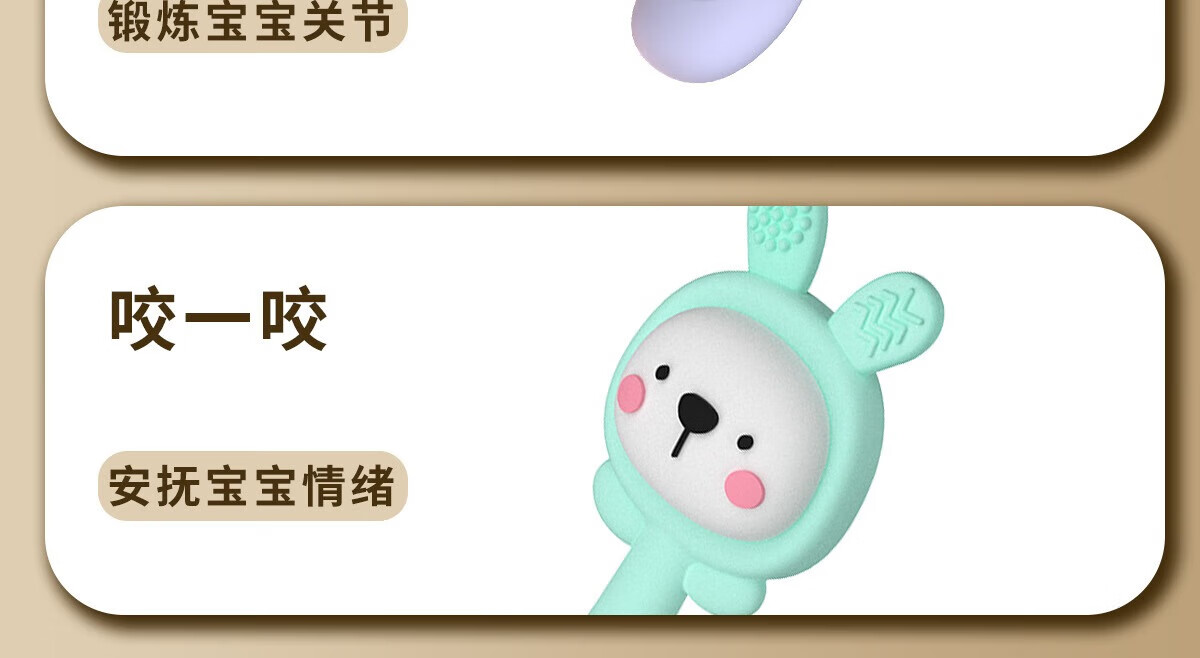 New rattle rabbit can chew teether rattle teether baby chewable food grade silicone pink bunny 1 pack bagged rattle-soothing teether