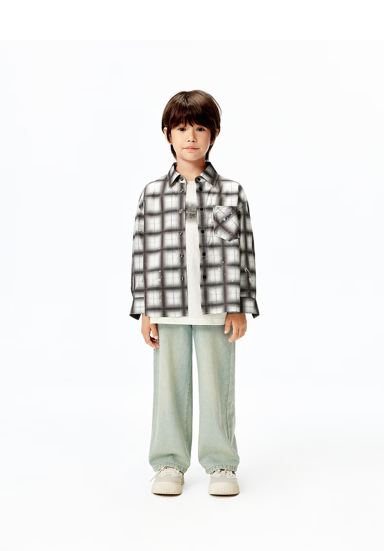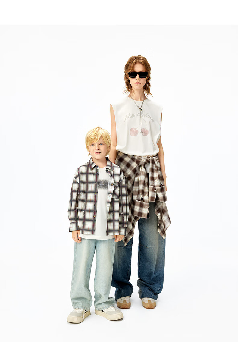 Little MO&Co.little moco children's clothing 25 summer new style for boys and girls pure cotton plaid long-sleeved shirt shirt jacket parent-child clothing multi-color plaid 120 120/60