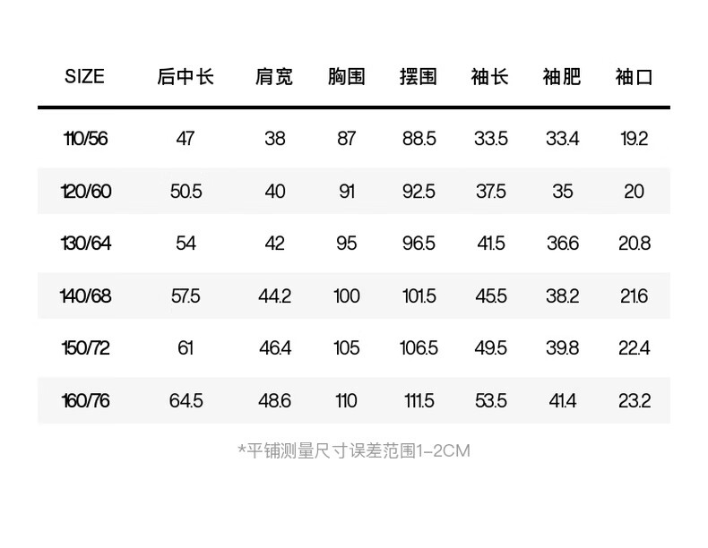 China(cm) 72-76 76-81 81-87 87-93 93-98
