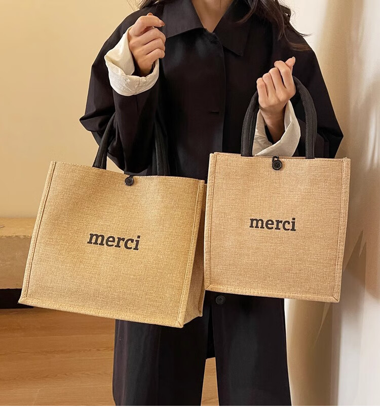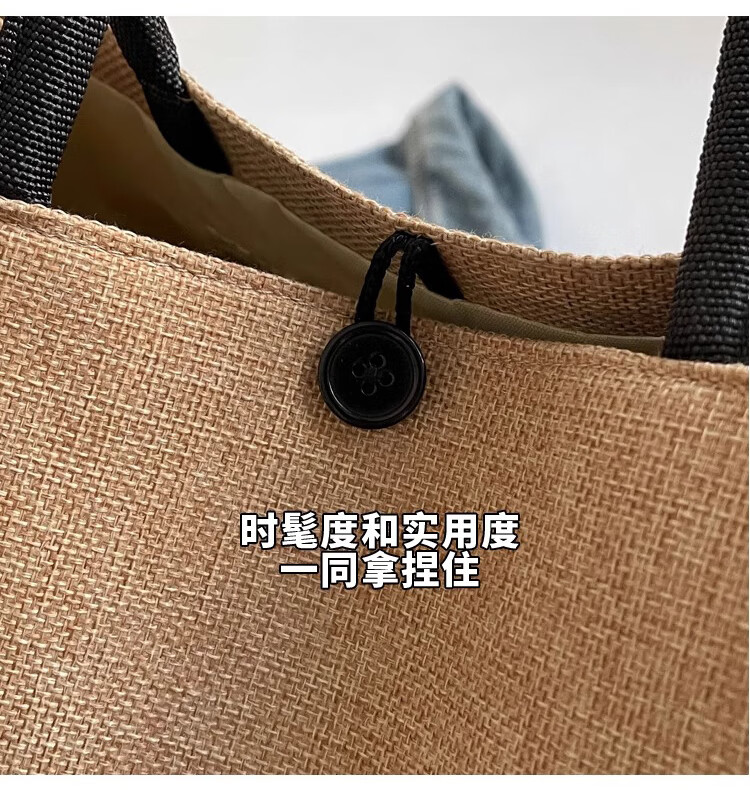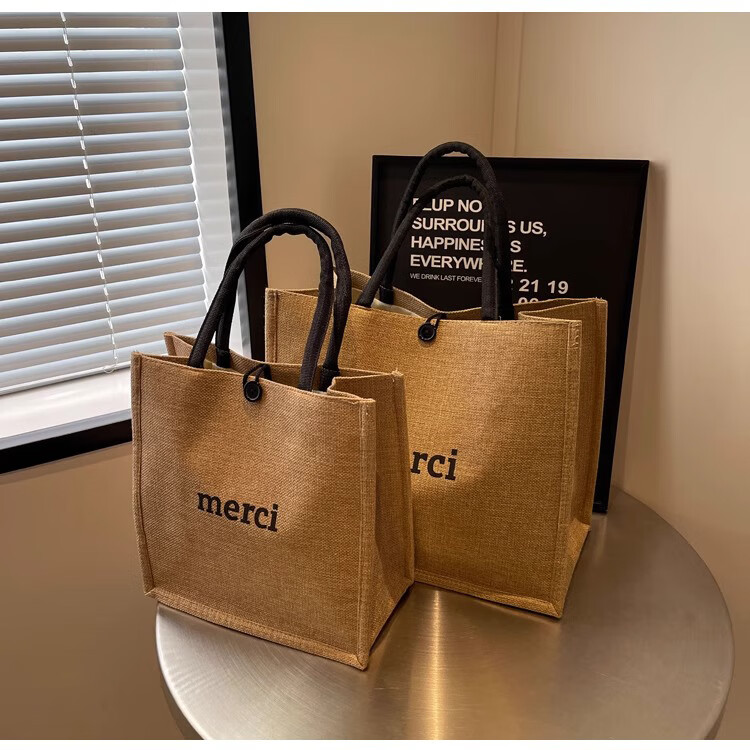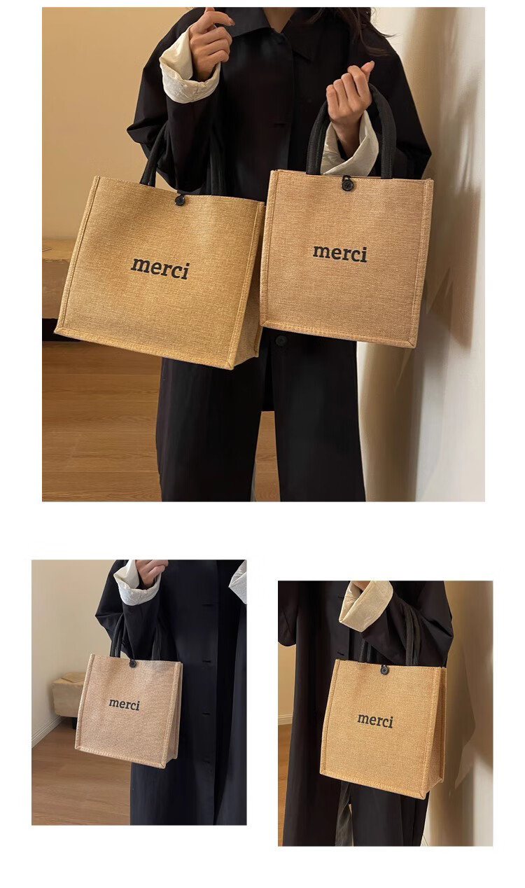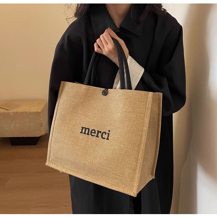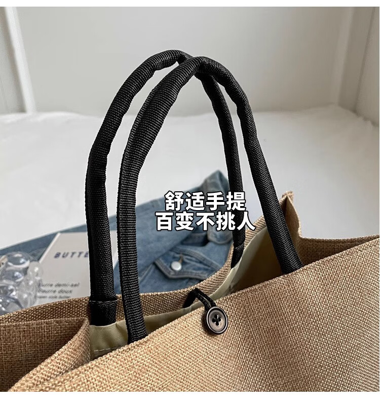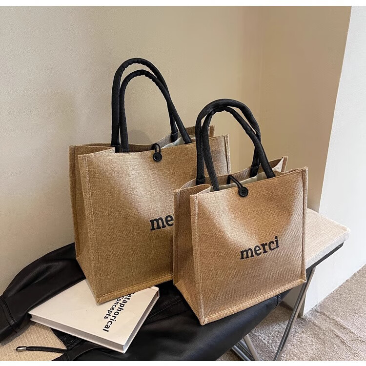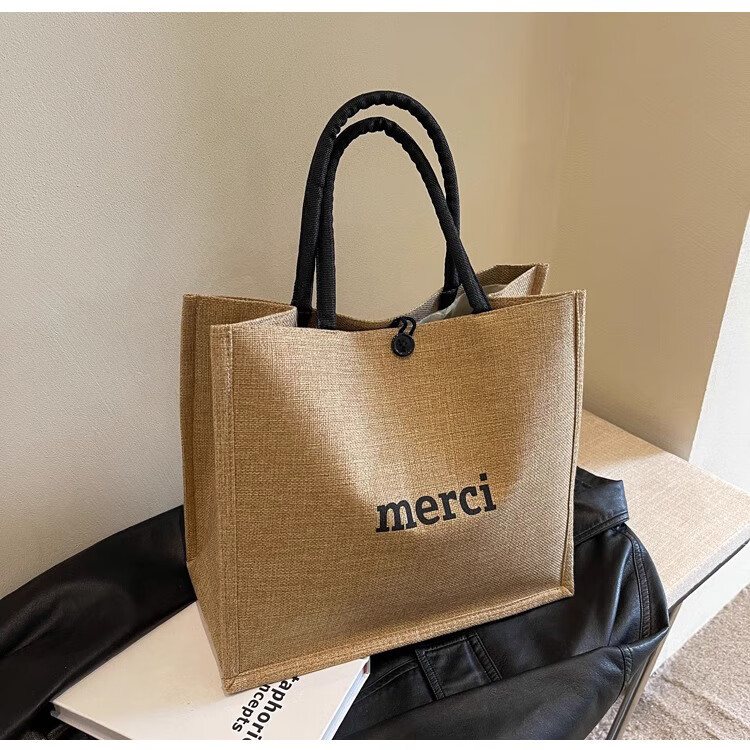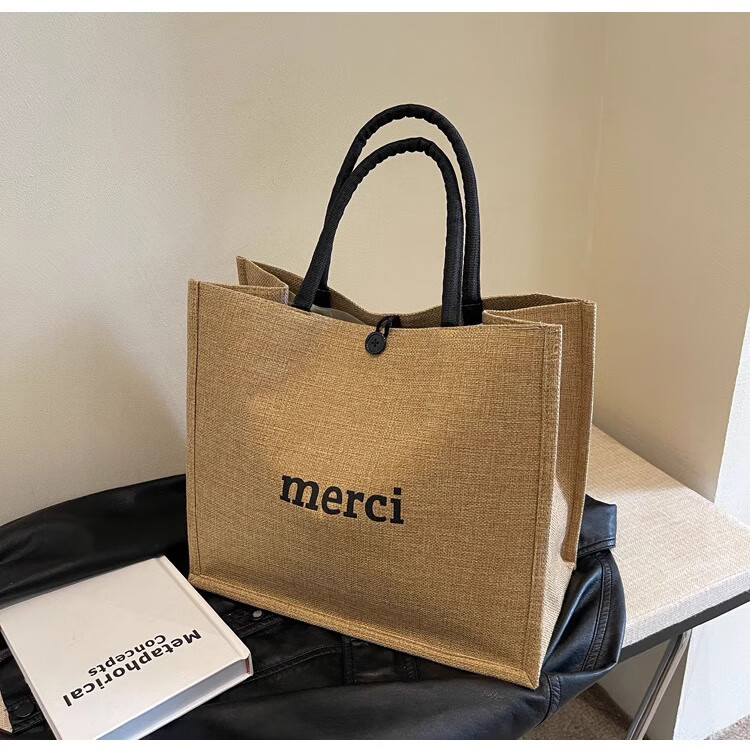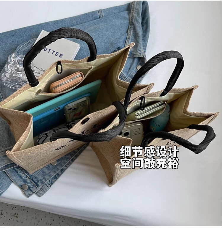 Xingxi Canvas Bag Women's Handbag 2025 New Large Capacity Linen Handbag Women's Ins Work Commuting Tote Bag Portable Linen Bag Smiley Face Large