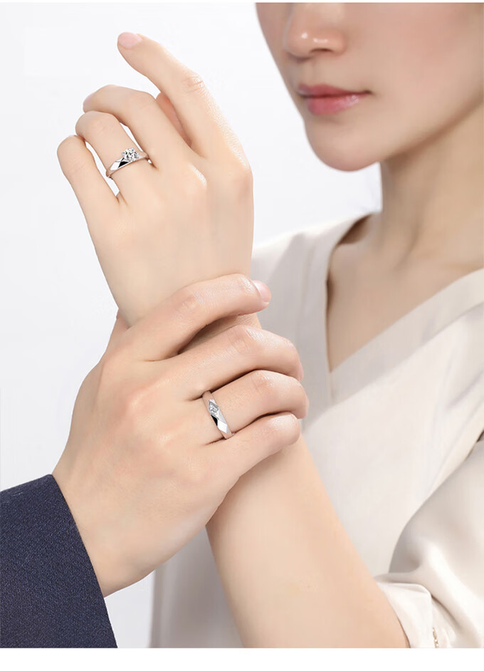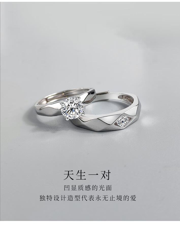 Jingxiang simulated fake diamond ring for a couple, wedding ring, live mouth, adjustable ring, proposal, wedding ceremony, wedding ceremony props, beloved star woven style couple ring, free ring box, live mouth/adjustable size