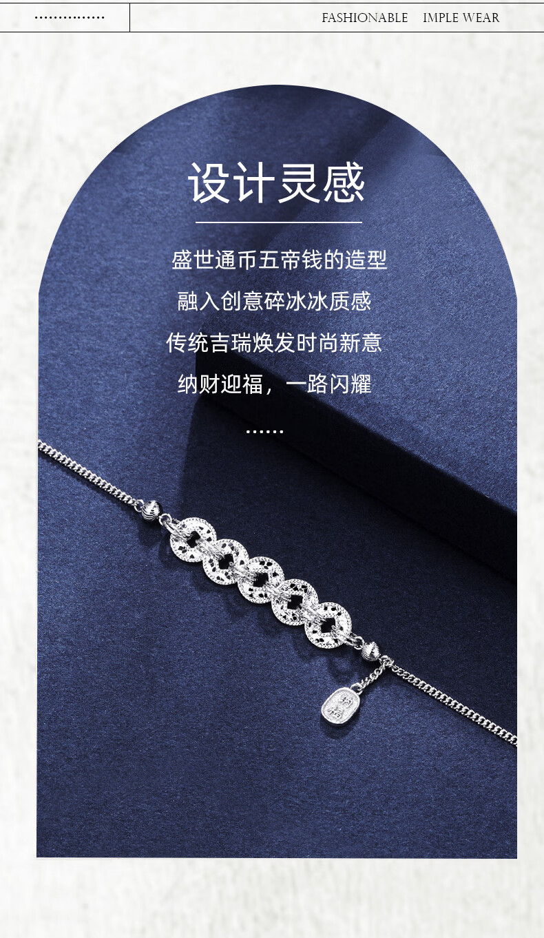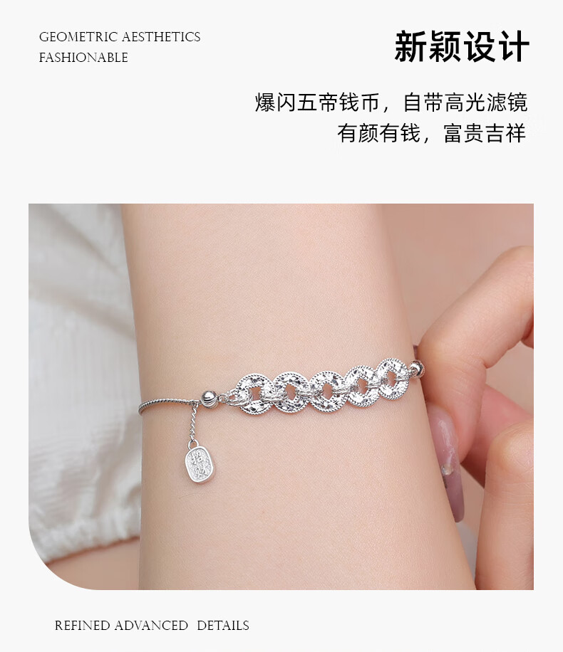 Centennial Baojinxiang Pt950 platinum bracelet for women, platinum bracelet, genuine 950 platinum bracelet, crushed ice five coin bracelet, 17+2cm, weighing about 5.9-6.1 grams, no tag