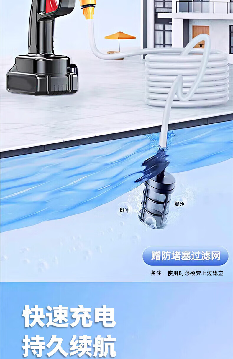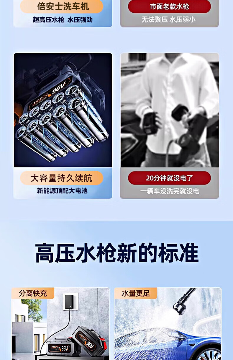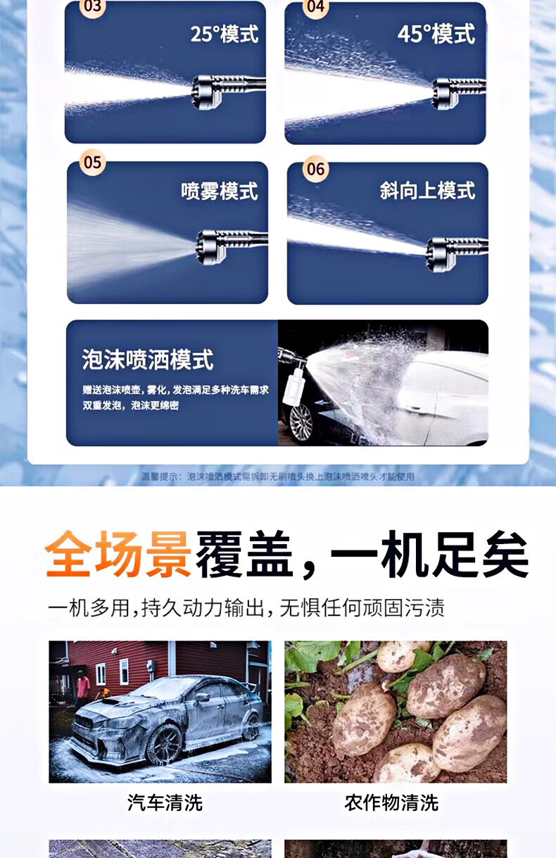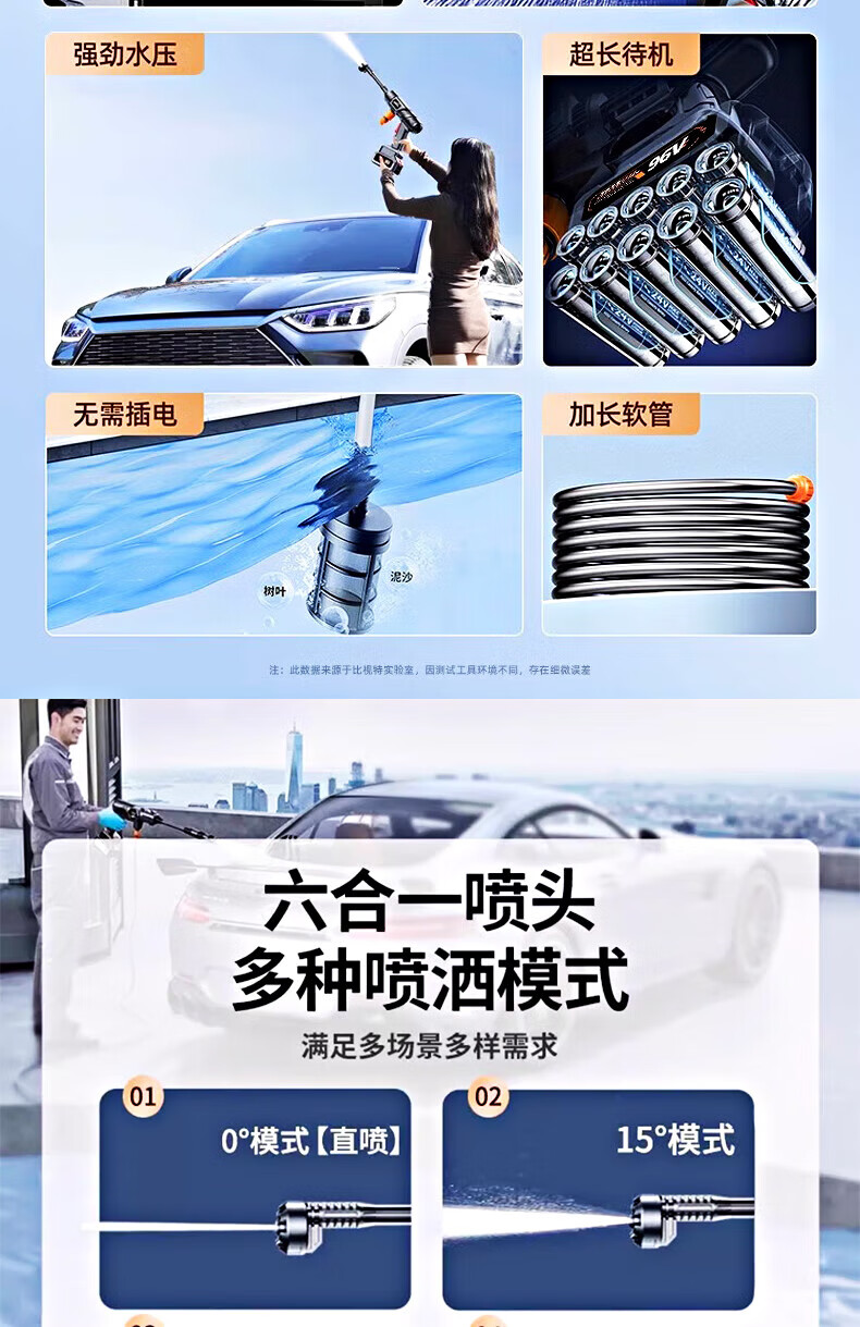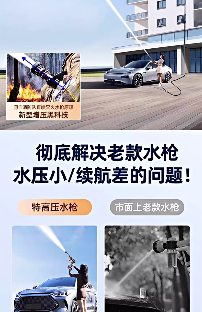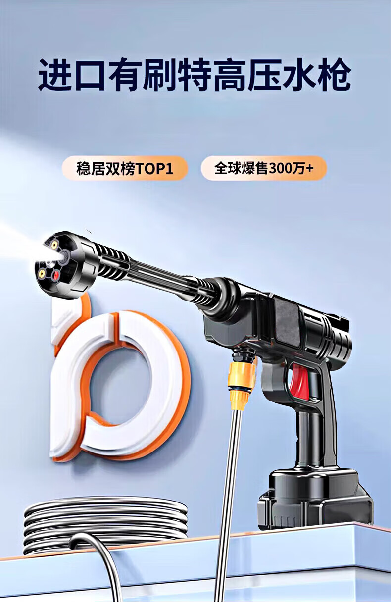Beoz car wash high-pressure spray gun car wash machine car wash water gun high-pressure water spray gun household supercharged lithium battery car brush artifact 580W 5999VF single battery + six-in-one nozzle + car wash gift bag