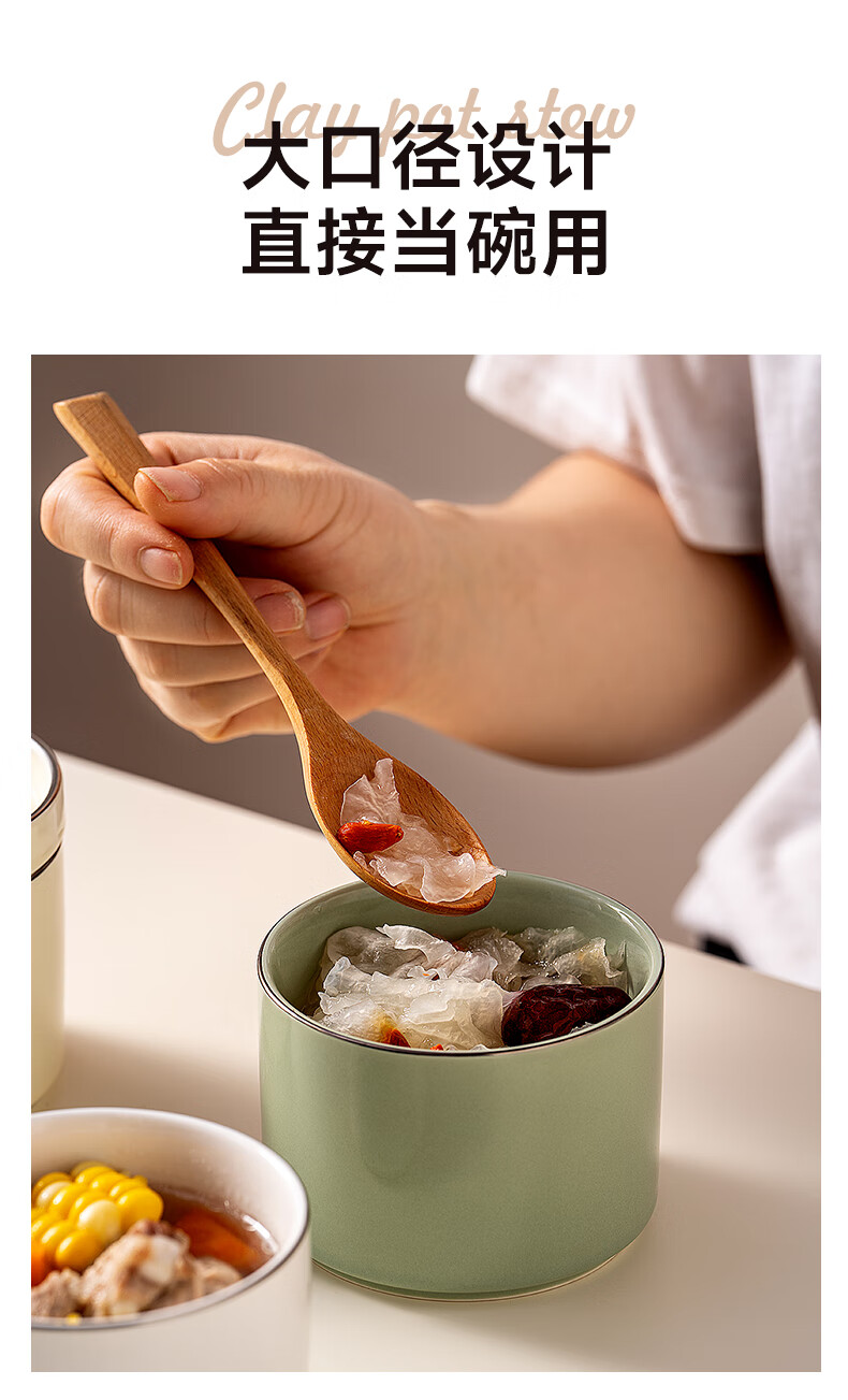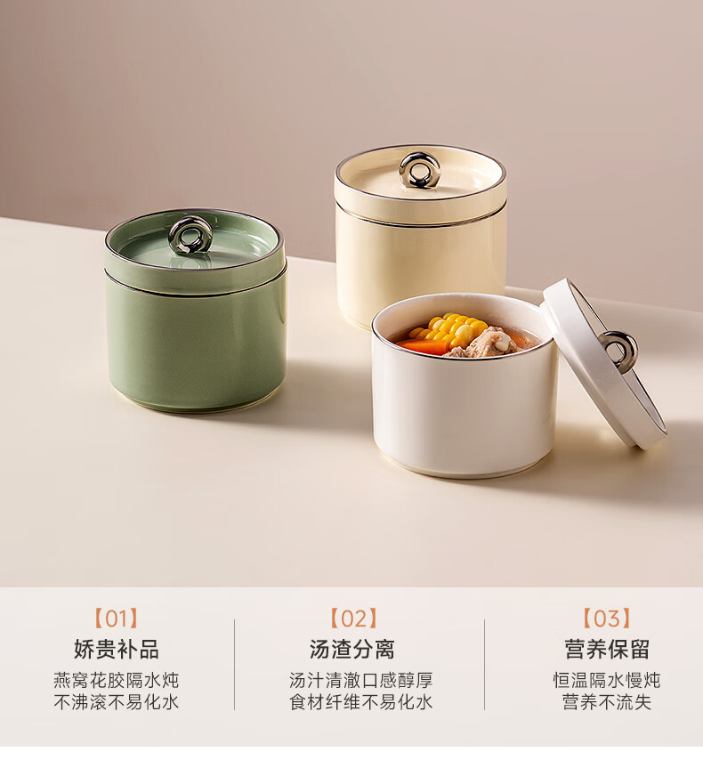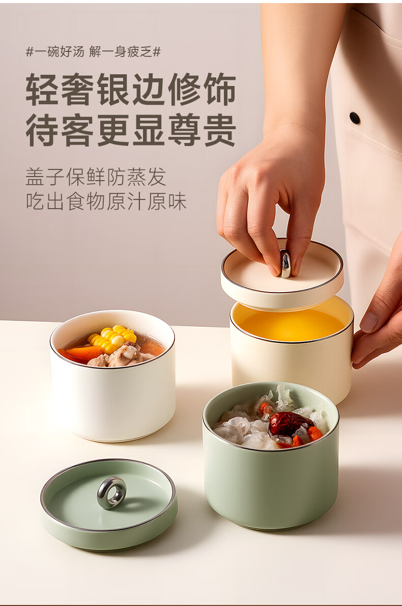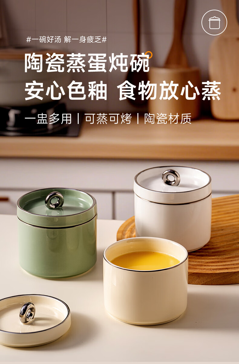 Onlycook ceramic water-proof stew pot with lid, household one-person steamed egg custard bowl, soup and porridge, special small soup pot, baking bowl, steaming cup, 3-piece set, milk white + milk yellow + matcha green