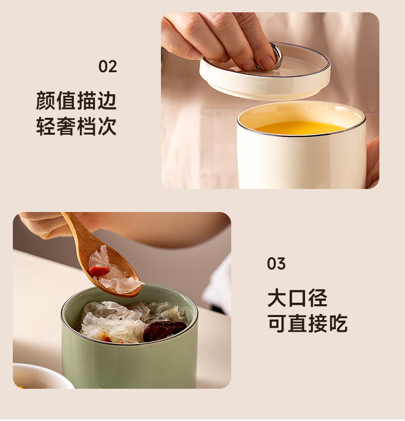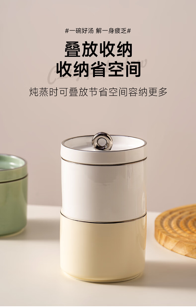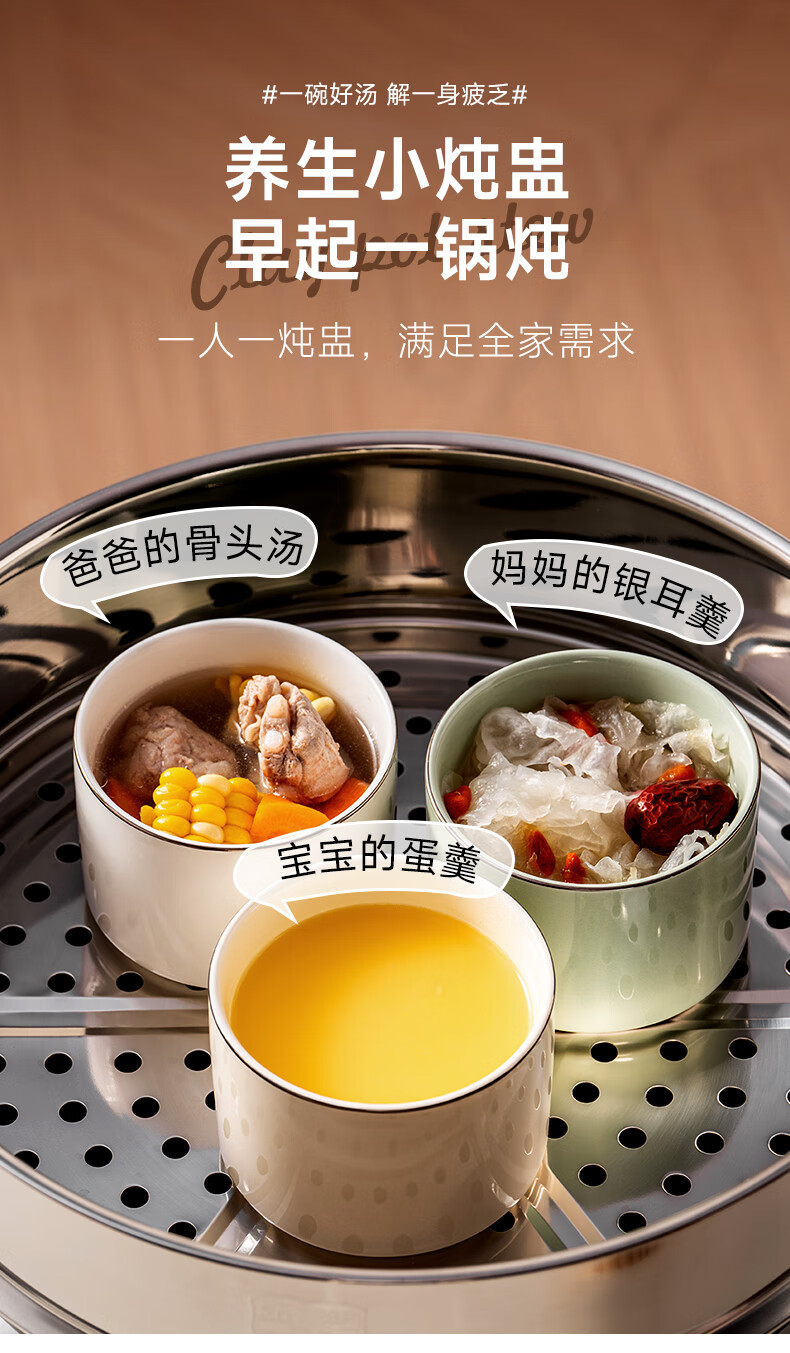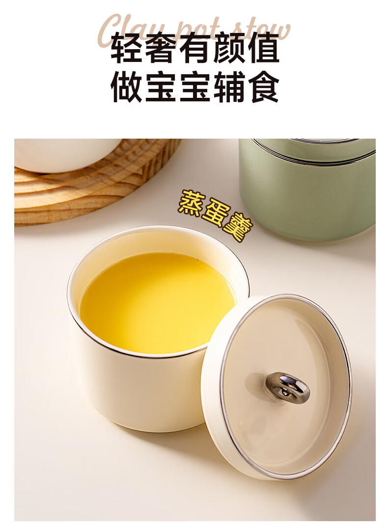 Onlycook ceramic water-proof stew pot with lid, household one-person steamed egg custard bowl, soup and porridge, special small soup pot, baking bowl, steaming cup, 3-piece set, milk white + milk yellow + matcha green