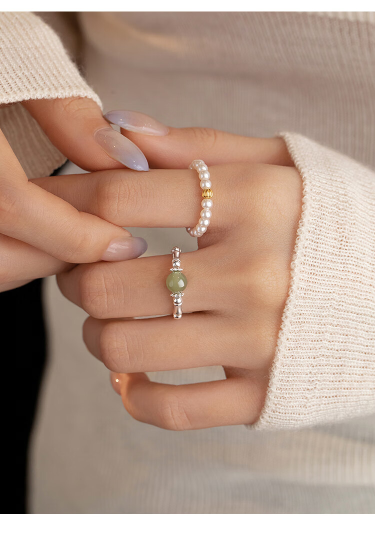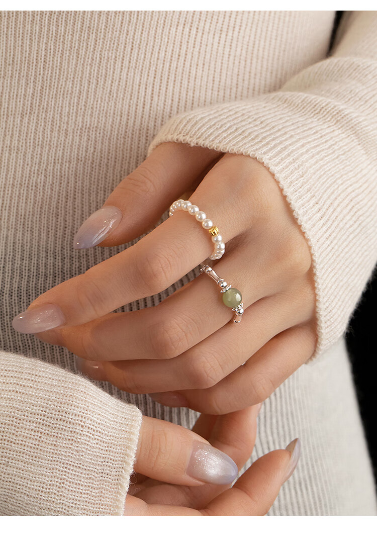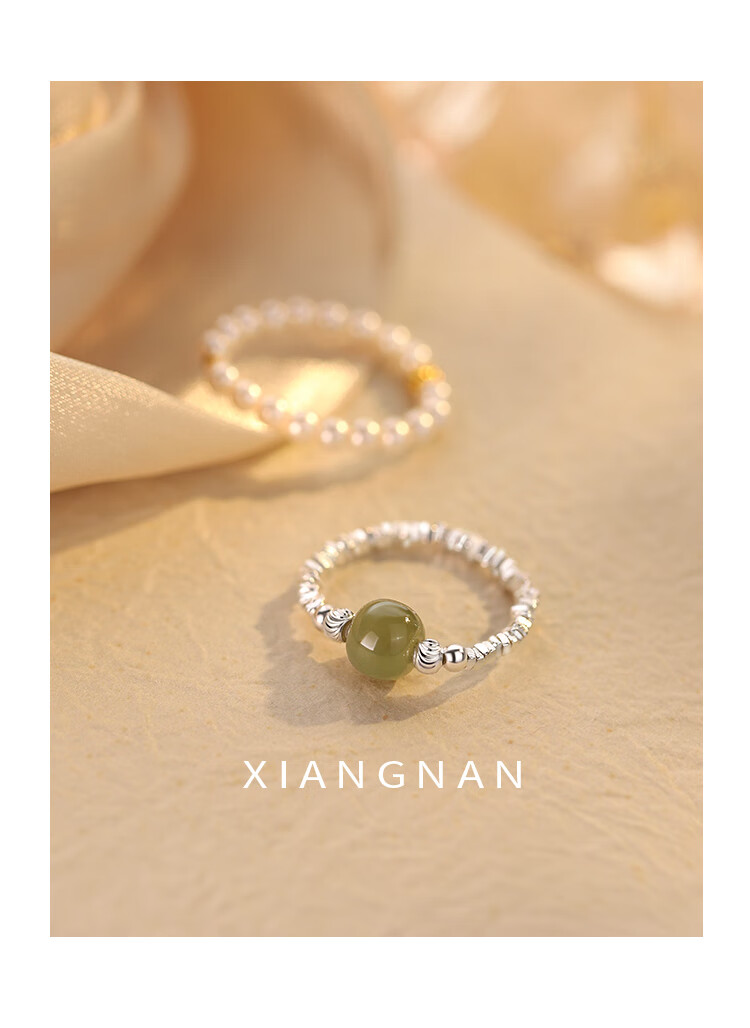 Xiangnan 925 sterling silver Hetian jade broken silver pearl ring plain ring for wife niche high-end gift girl birthday index finger ring 925 silver broken silver ring