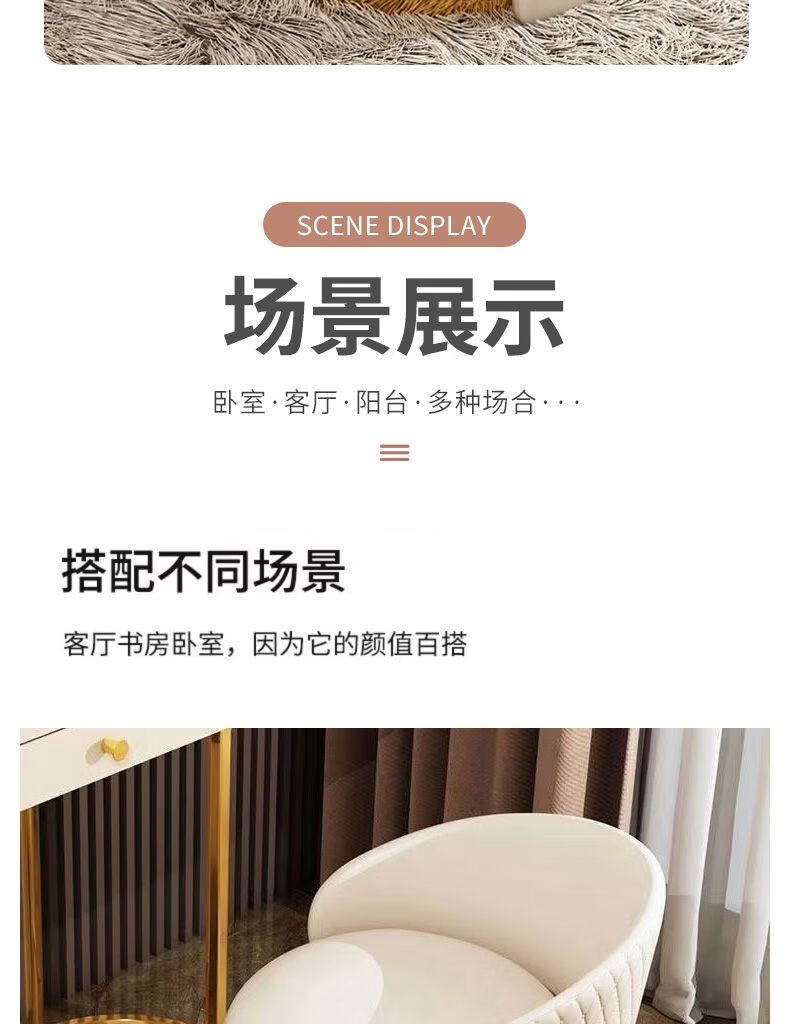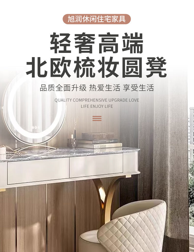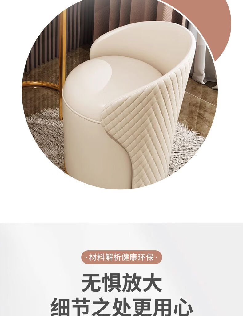 Jungle Makeup Stool Dressing Table Chair Bedroom Dressing Stool Makeup Chair Light Luxury High-end Manicure Chair Rotatable with Backrest Pulley Storage Model - All White