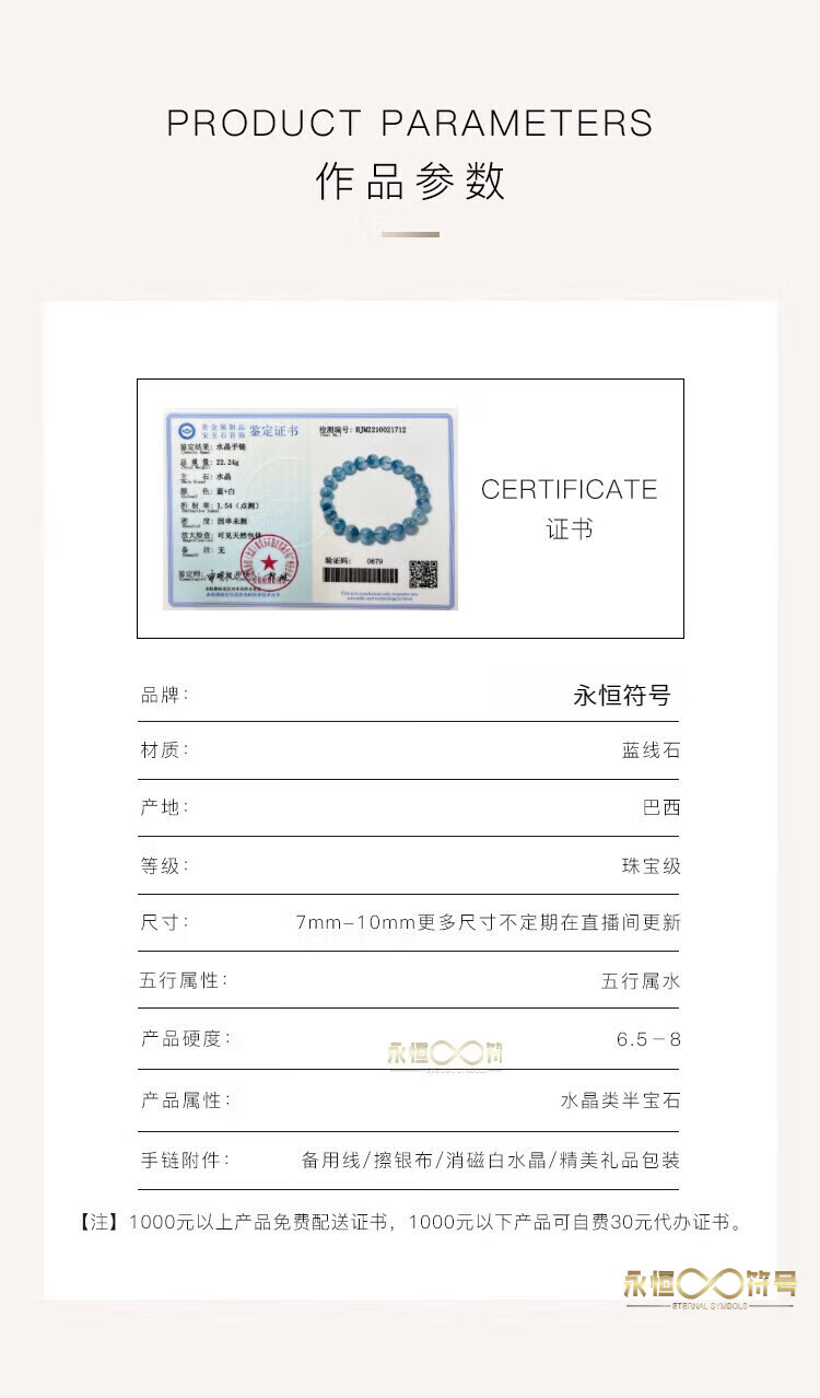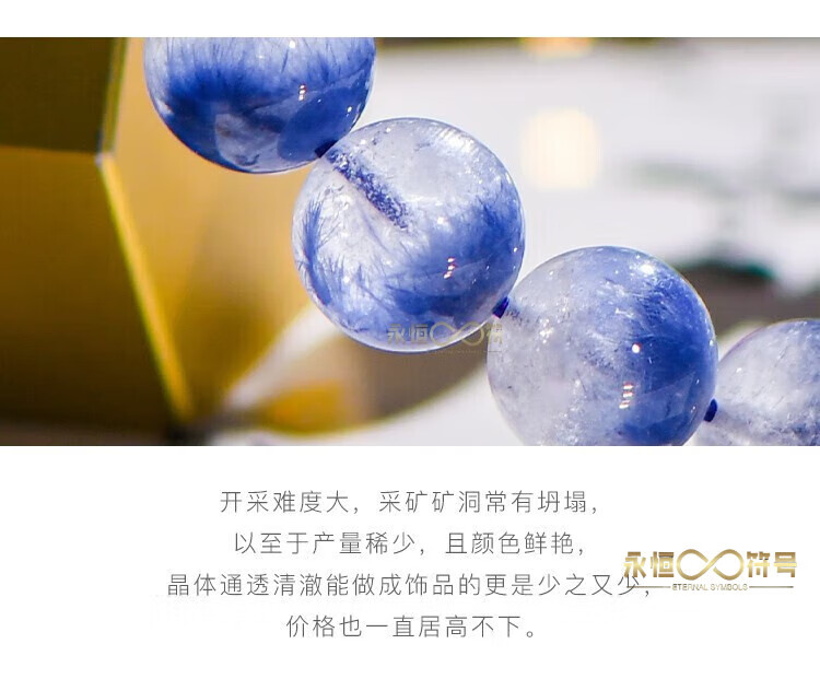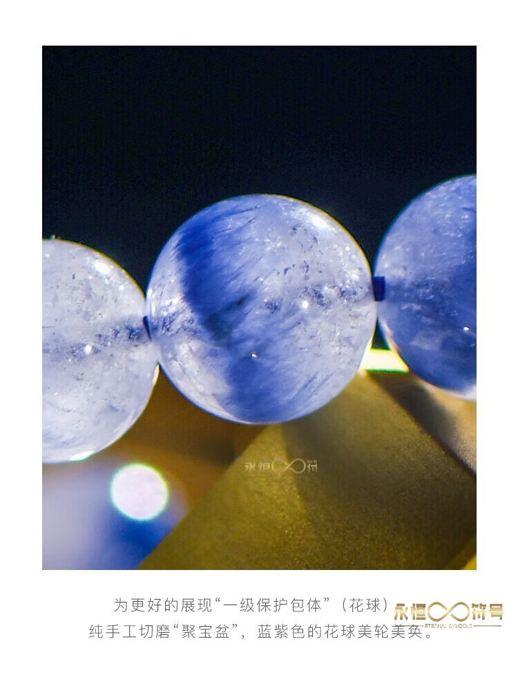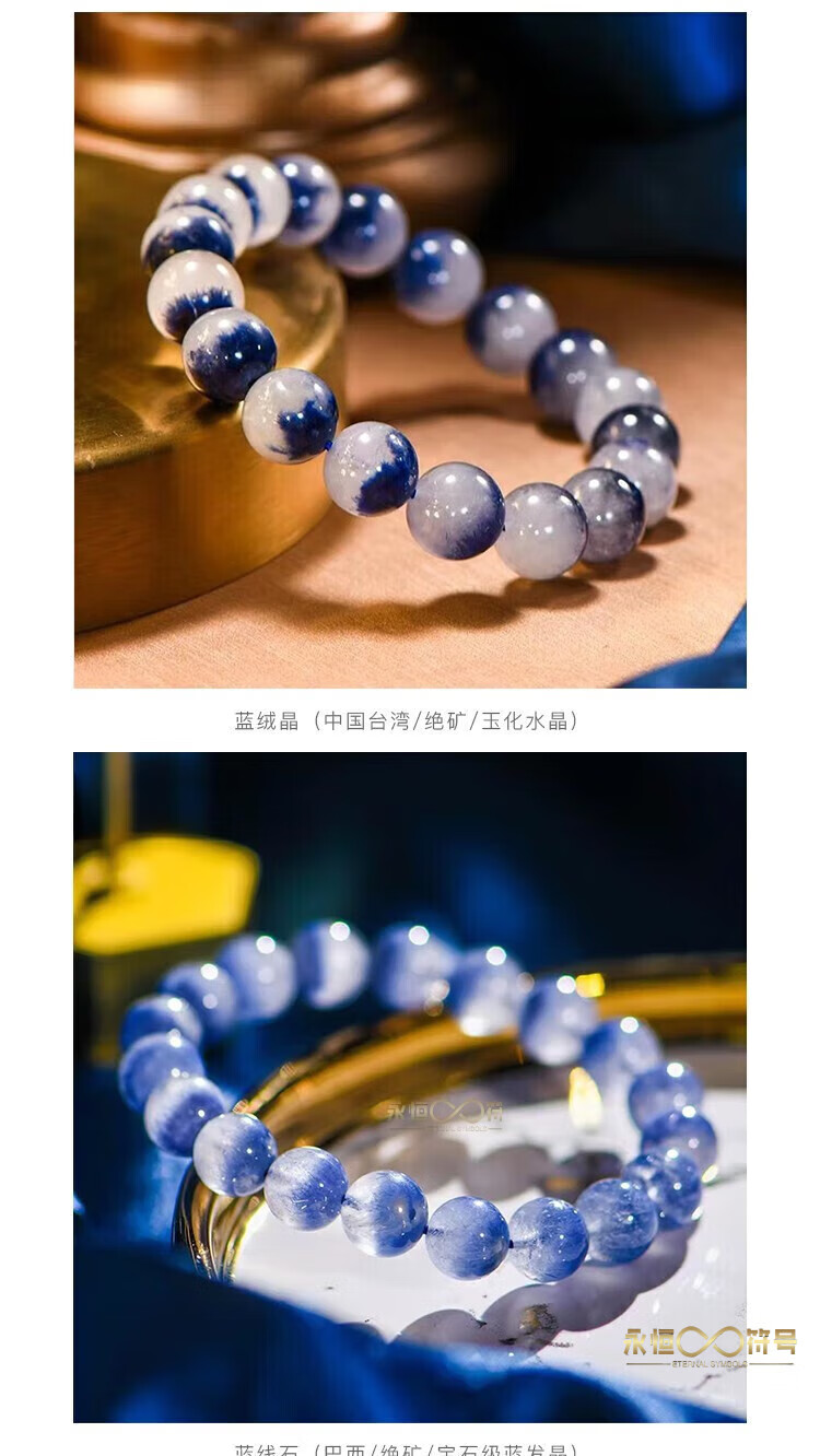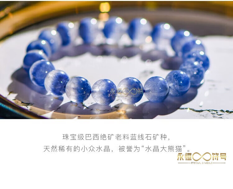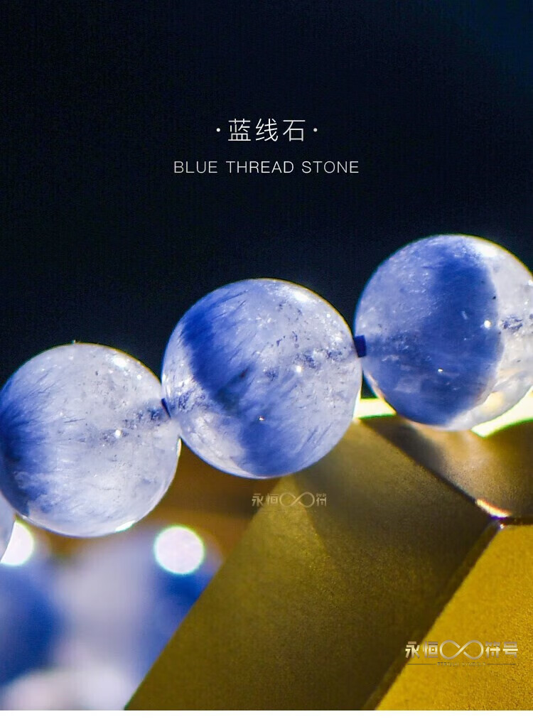 Eternal symbol light luxury brand luxury crystal bracelet Brazilian old mine blue line stone bead bracelet birthday gift for men and women jewelry grade blue line stone about 9mm