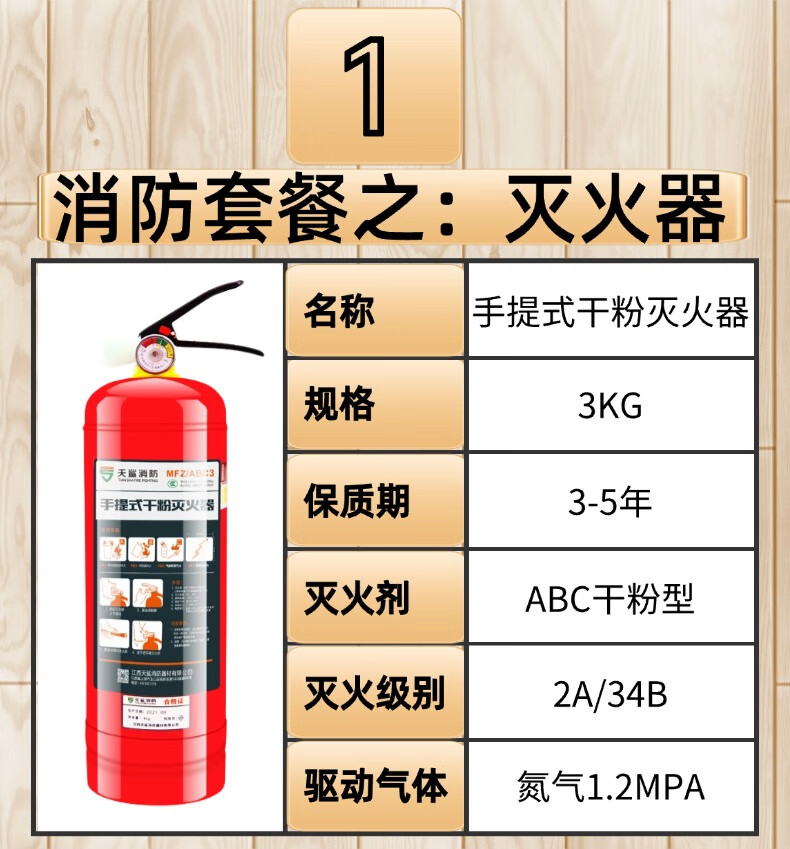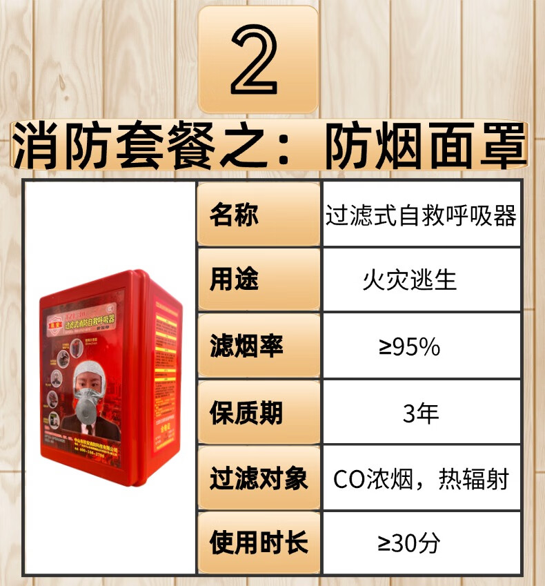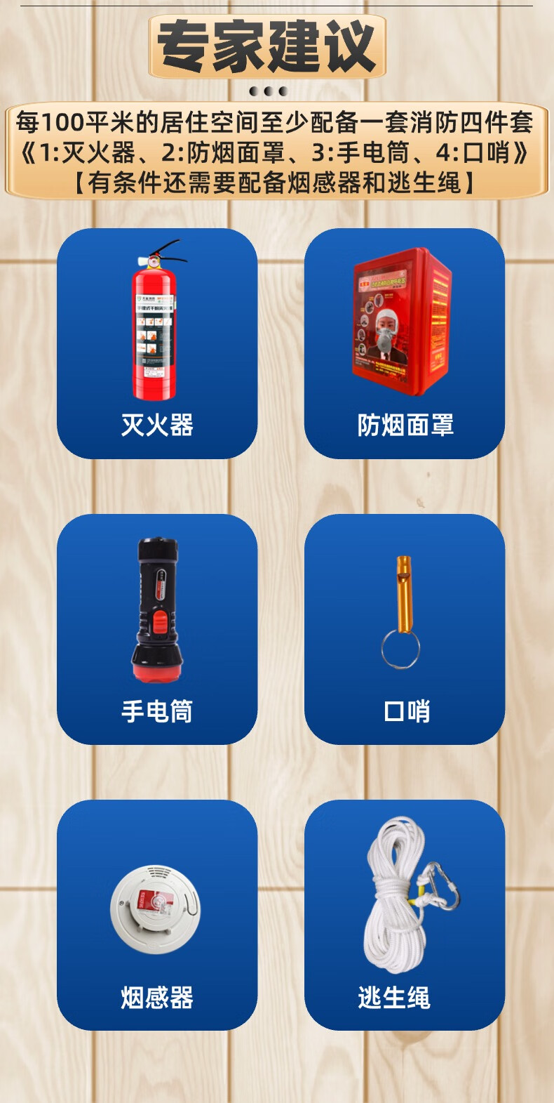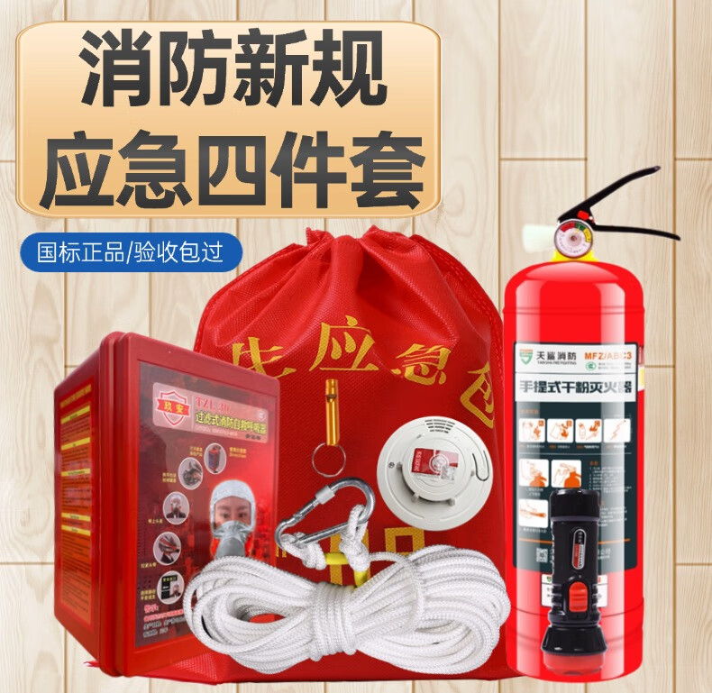 Firefighting four-piece set for home rentals, B&Bs, hotels, hotel escape emergency kits, complete fire extinguisher home set, firefighting-specific three-piece set (national standard mask) upgrade set