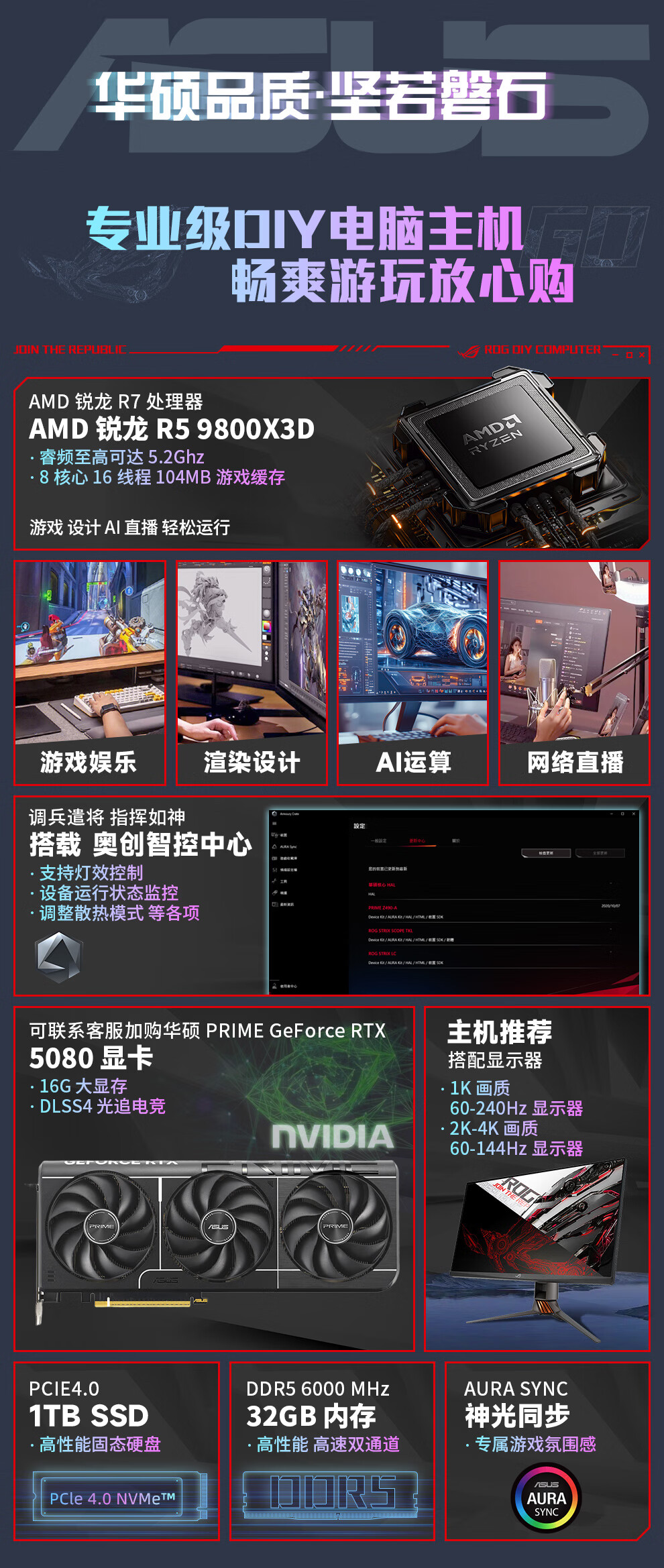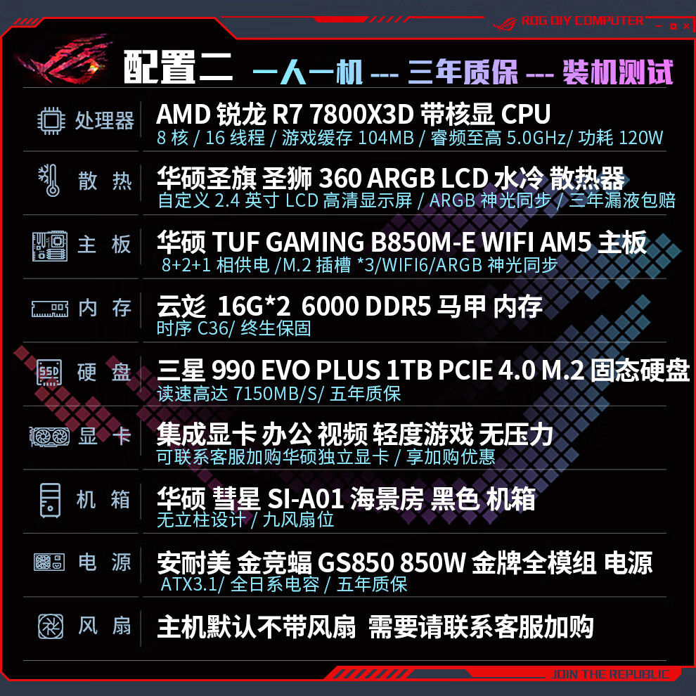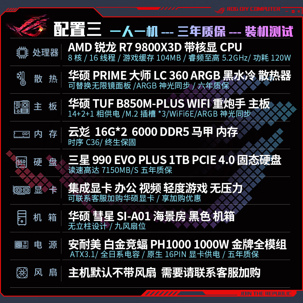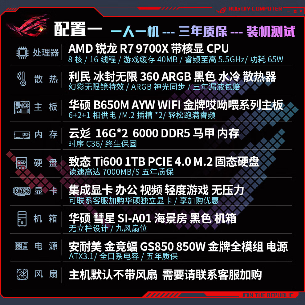 ASUS AMD R7 9800X3D/7800X3D/9700X host family bucket without graphics card barebones DIY desktop assembly computer design rendering e-sports game transition complete machine with a 9700X barebones