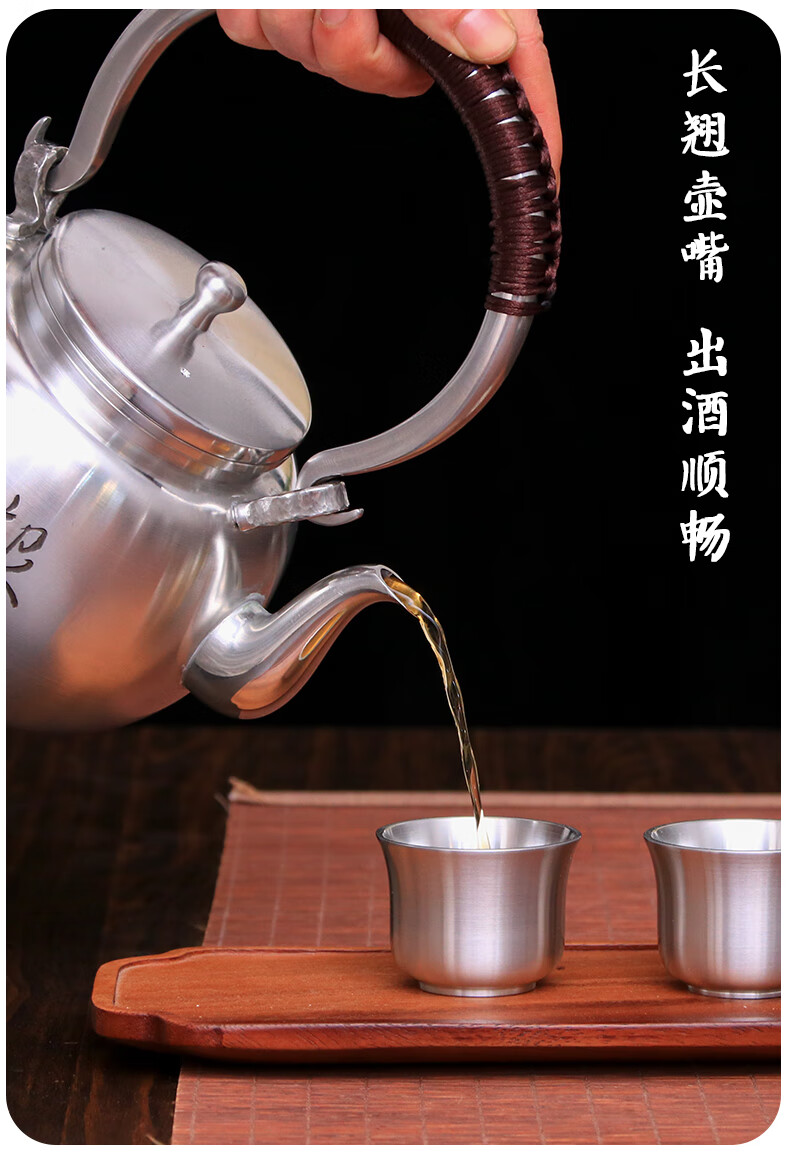 The Source of Craftsman Pure Tin Wine Kettle Warming Wine Kettle Yellow Wine Boiler Wine Warmer Wine Divider Kettle Large Warm Wine One Liter Household Wine Hand-engraved Model