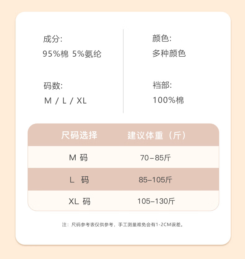 Pure cotton underwear for women 7A antibacterial cotton bottom crotch comfortable breathable skin-friendly mid-waist women's solid color simple triangle shorts 1 pack random color XL (105-130Jin Jin equals 0.5kg)