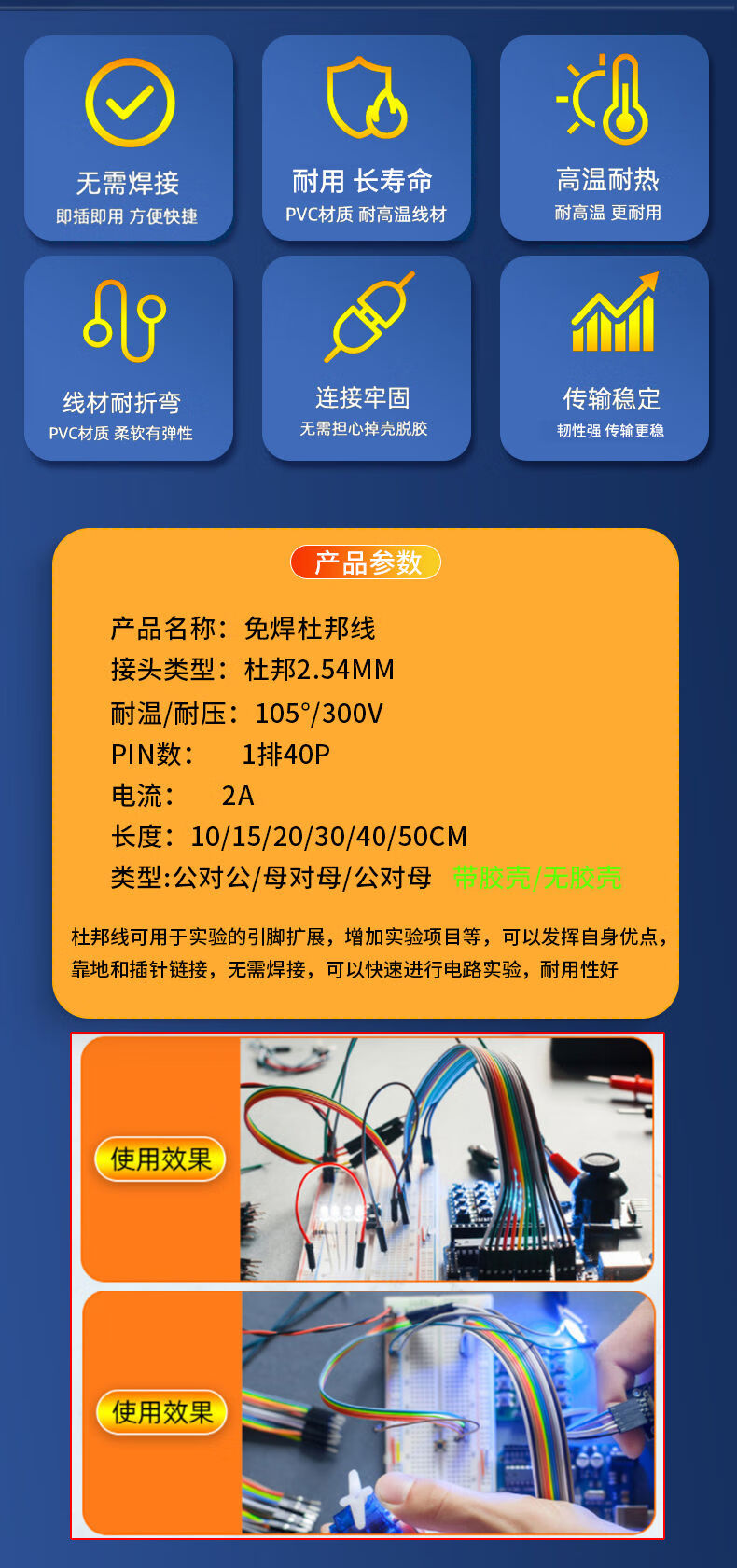 Zejie 40p color Dupont line rehearsal line 10/20/30/40cm connecting line female to female/male to male/male to female Dupont line 40cm three combinations are more cost-effective (120 in total) others