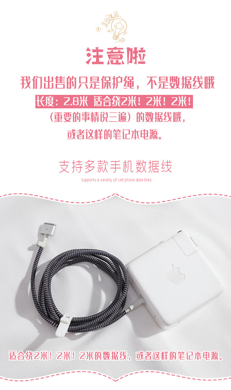 Yuzhi data cable protective sleeve is suitable for Apple 16/15/14/13 Huawei oppo Xiaomi vivo/ipad mobile phone charging cable protection charger anti-cat bite winding cable super long ears thread black