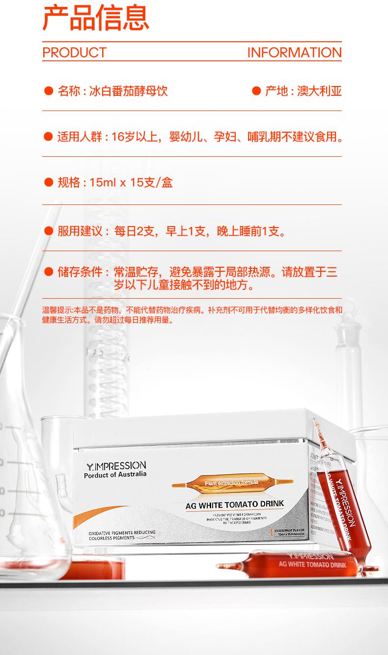 Y.IMPRESSION Y.IMPRESSION Liquid Pilates Australia imported plant extract essence drink Y.IMPRESSION Ice White Tomato Yeast Drink Whitening Drink 1 box trial pack 15 pieces/box Ice White Tomato Yeast Drink