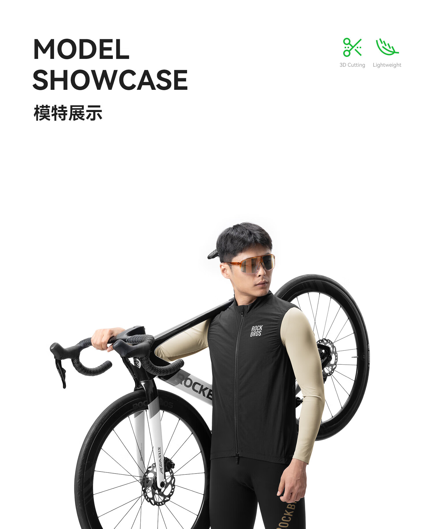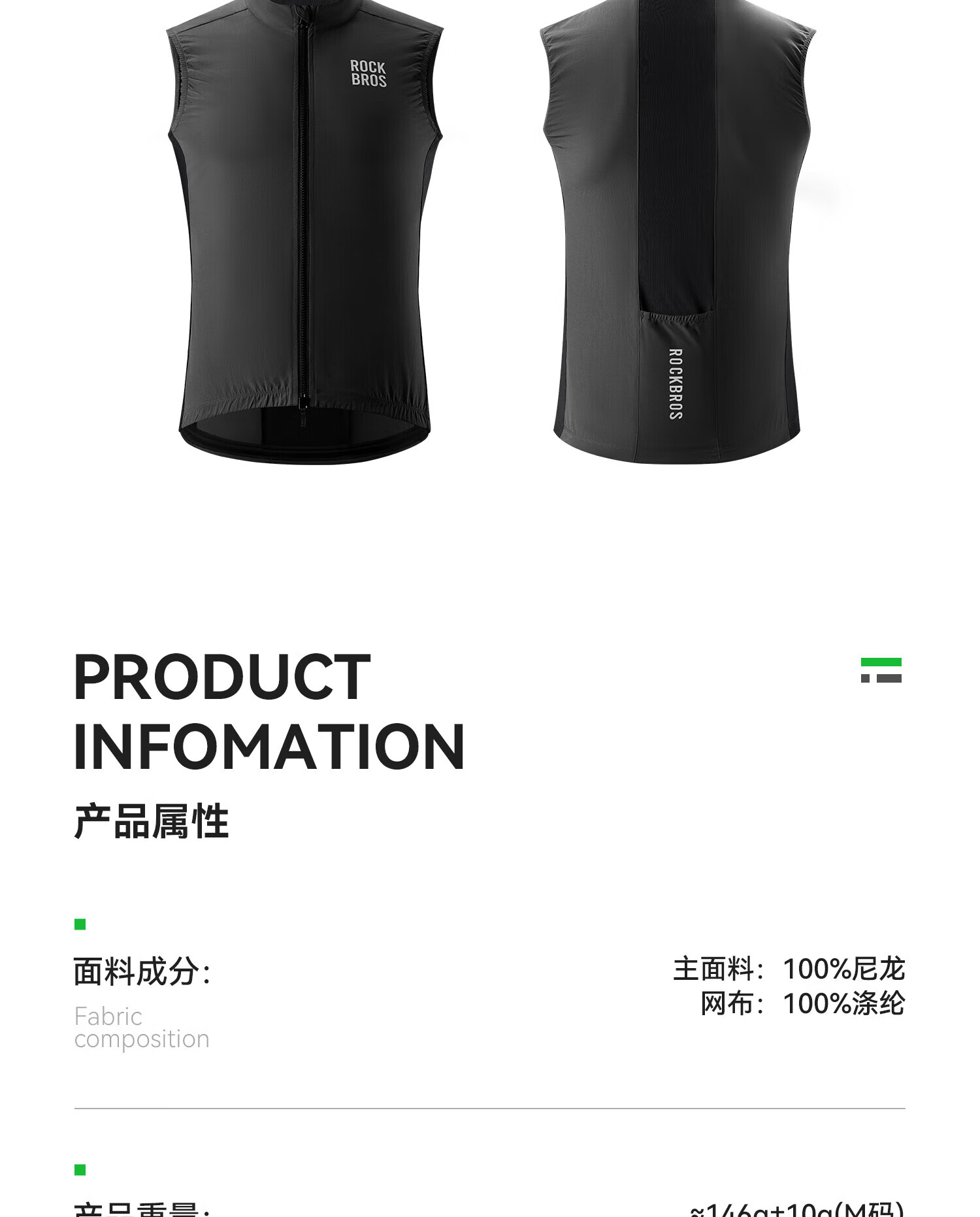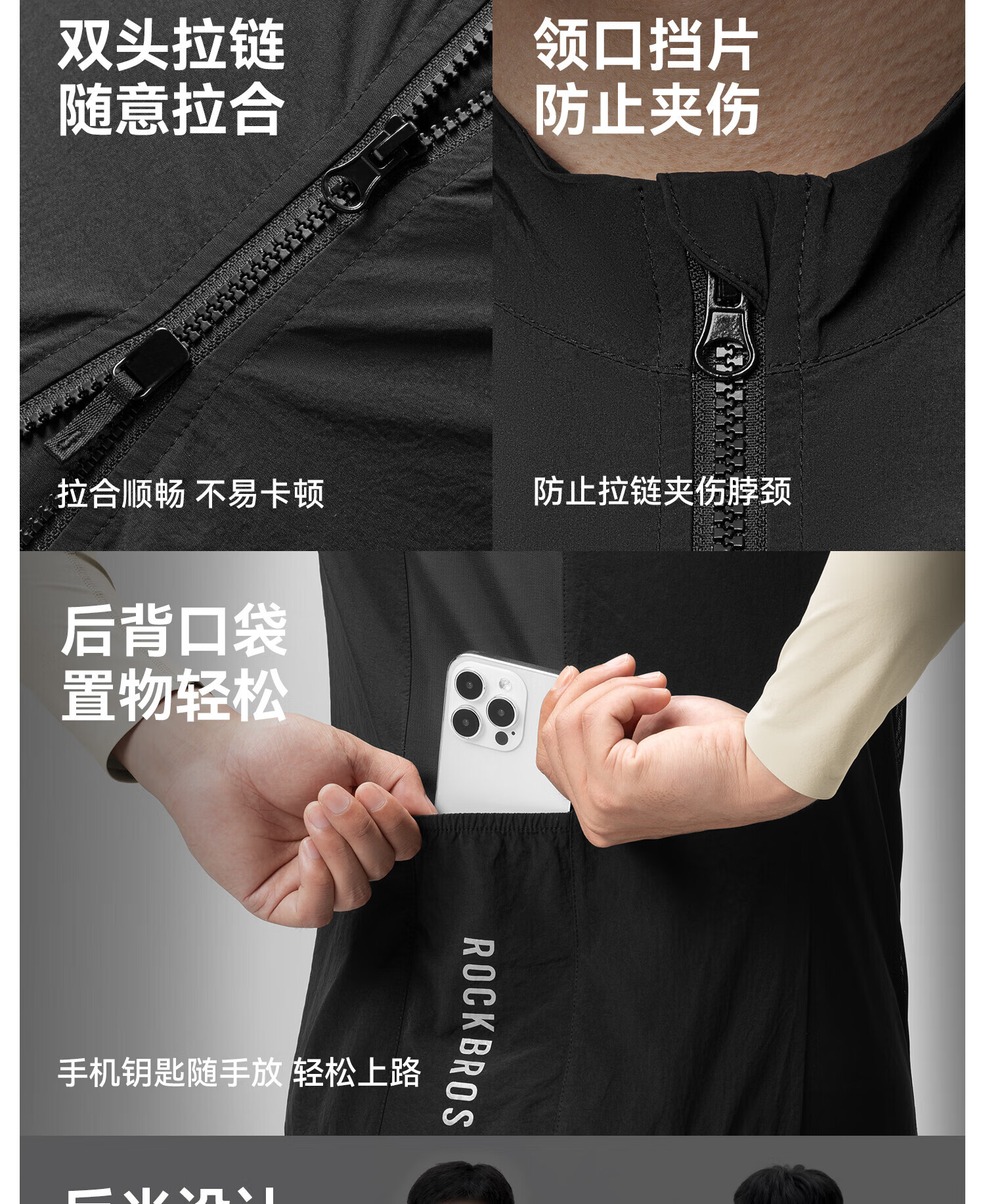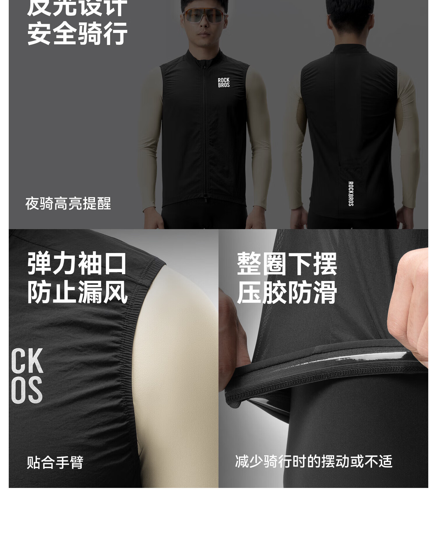 ROCKBROS Windproof Vest Cycling Clothing Road Cycling Windbreaker Vest Sleeveless Top Men and Women Spring and Summer Black M