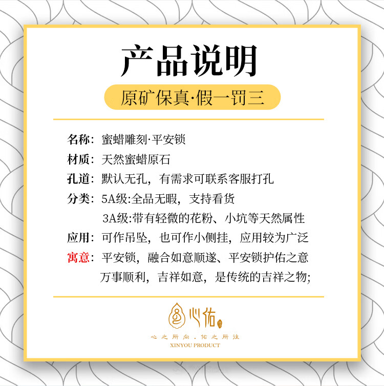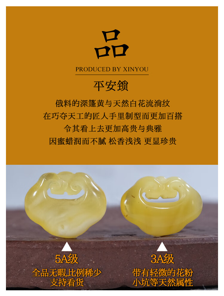 Xinyou natural real beeswax safe lock pendant necklace authentic clavicle chain side hanging small accessories diy gift girl accessories Wushi brand number 124828