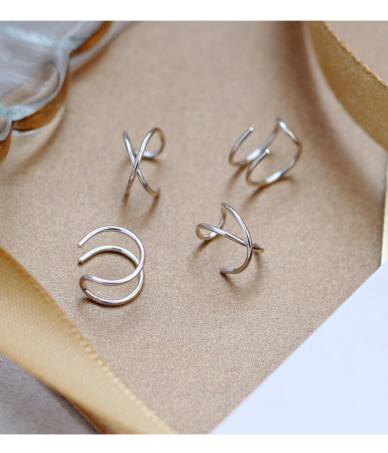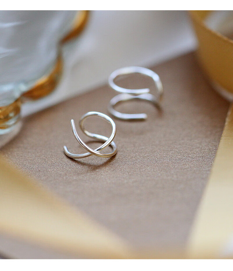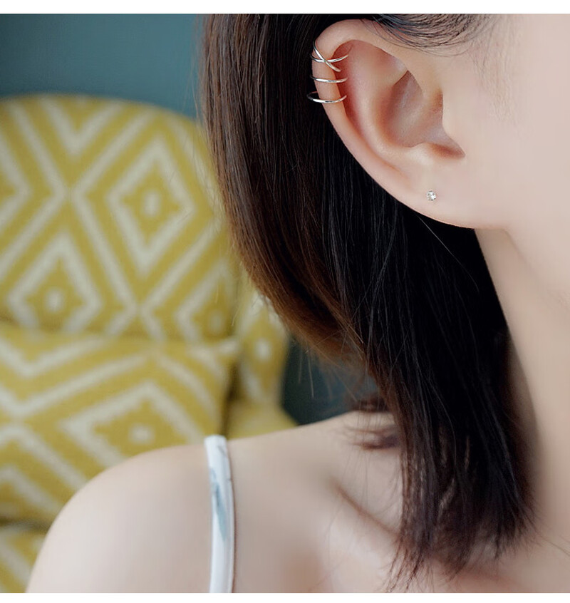 Double-layer earrings for women without pierced ears, elegant lines, cross ear clips, fashionable and simple autumn and winter earrings, silver