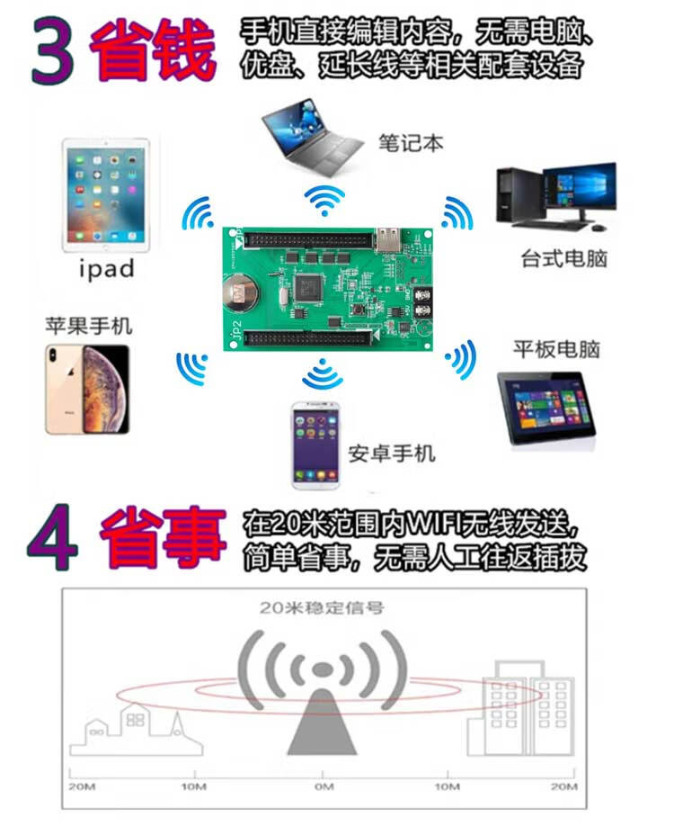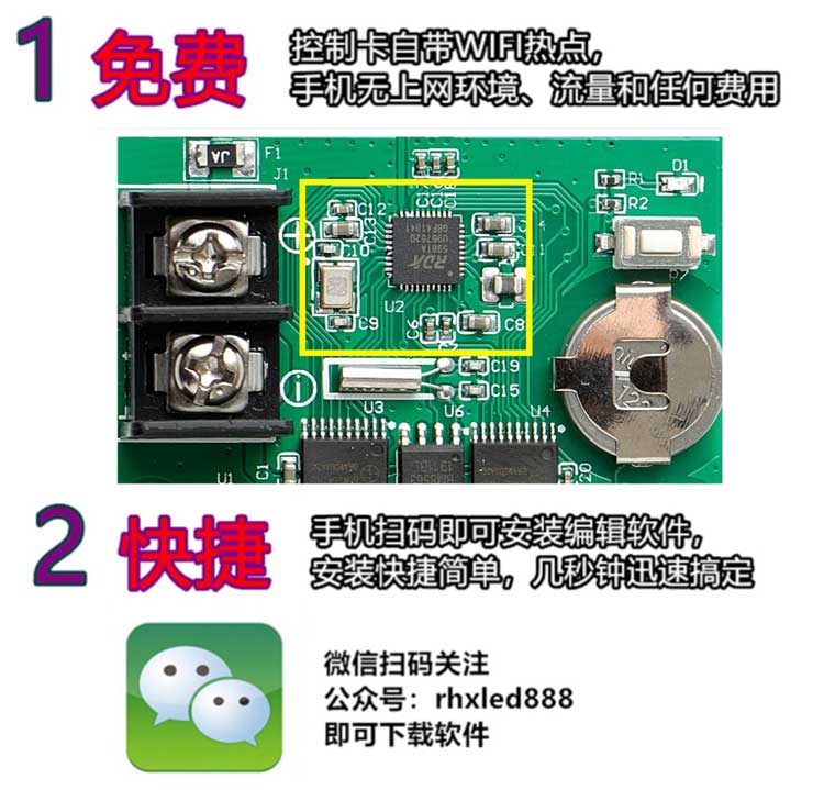 Ruihexin RHX8-64W512 64W1280A 64WU3200A single and double color LED mobile phone WIFI control card RHX8-64W1280A