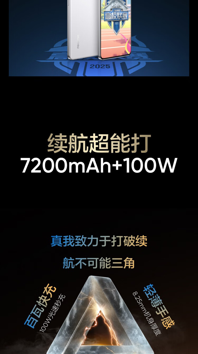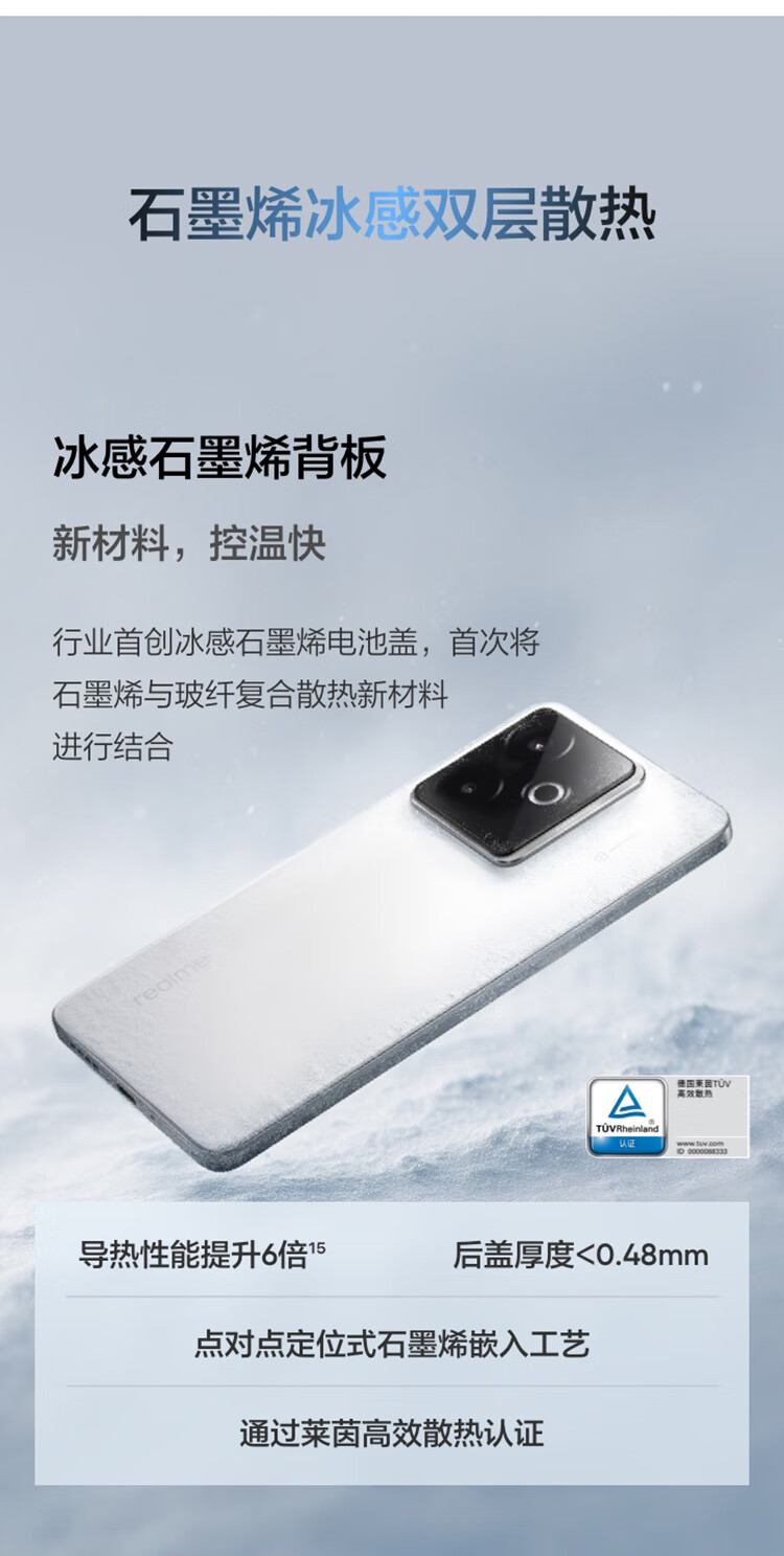 Realme GT7 Dimensity 9400+, thin and light, large battery, fast charging and long battery life, extremely narrow bezel, straight screen, e-sports AI gaming 5G mobile phone, graphene snow 12GB+256GB