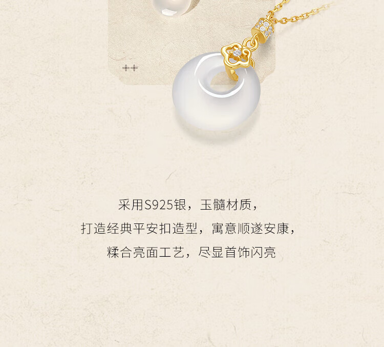Saturday Fortune (ZLF) S925 silver chalcedony necklace women's safety buckle pendant niche gift for girlfriend's birthday, pendant chain length 40+5cm