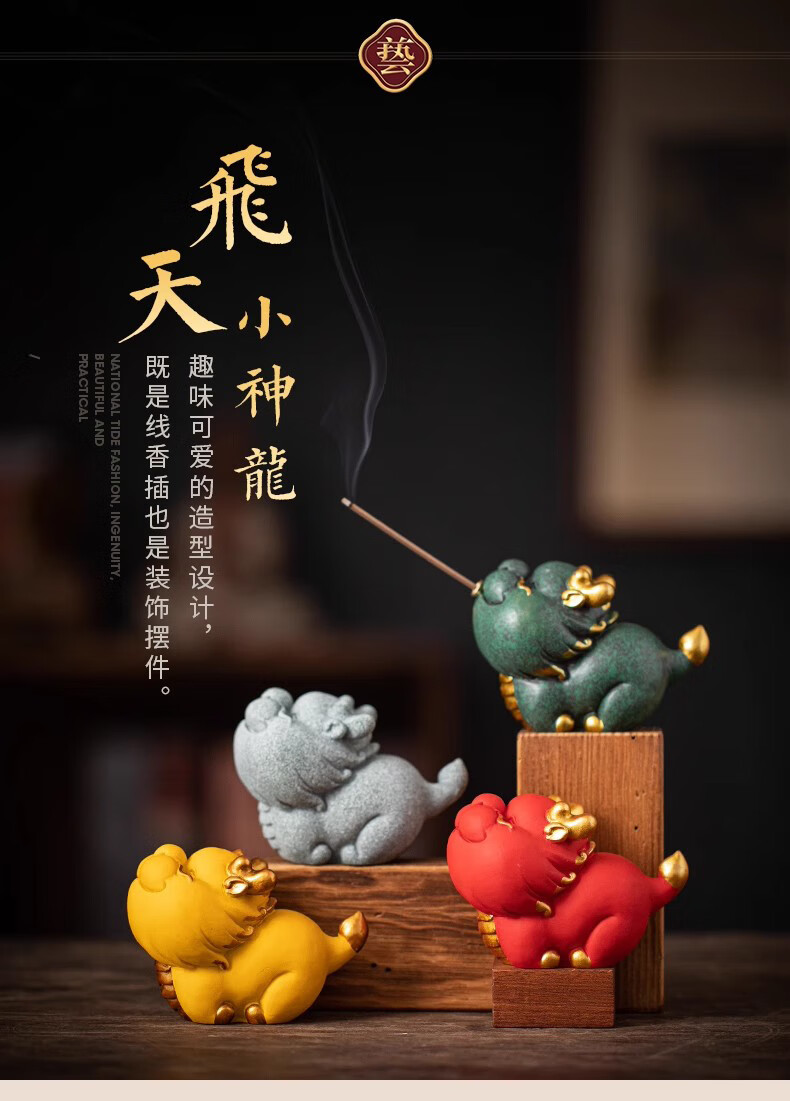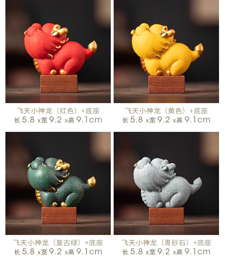BOSSY Forbidden City Cultural and Creative Figure Zodiac Dragon Tea Pet Flying Little Dragon Gift Home Desktop Decoration Creative Decoration Flying Little Dragon Color Gold Green Gift Box