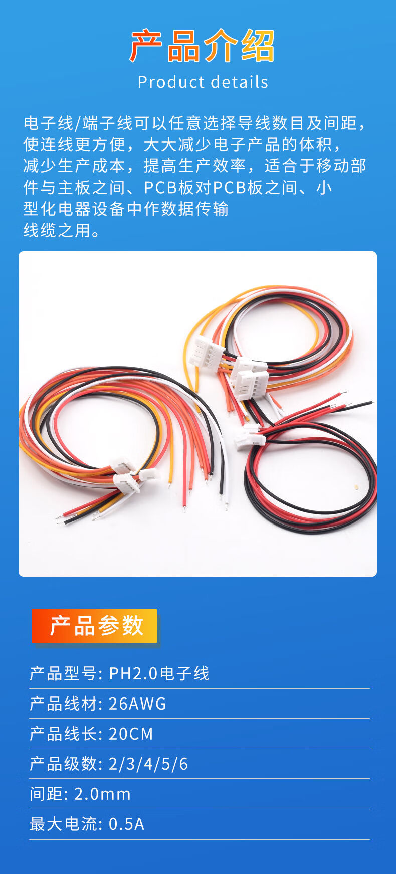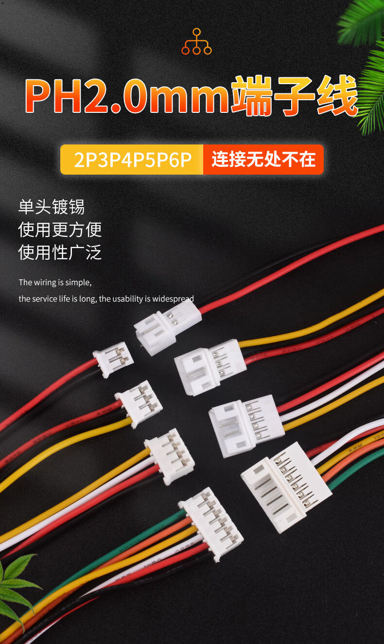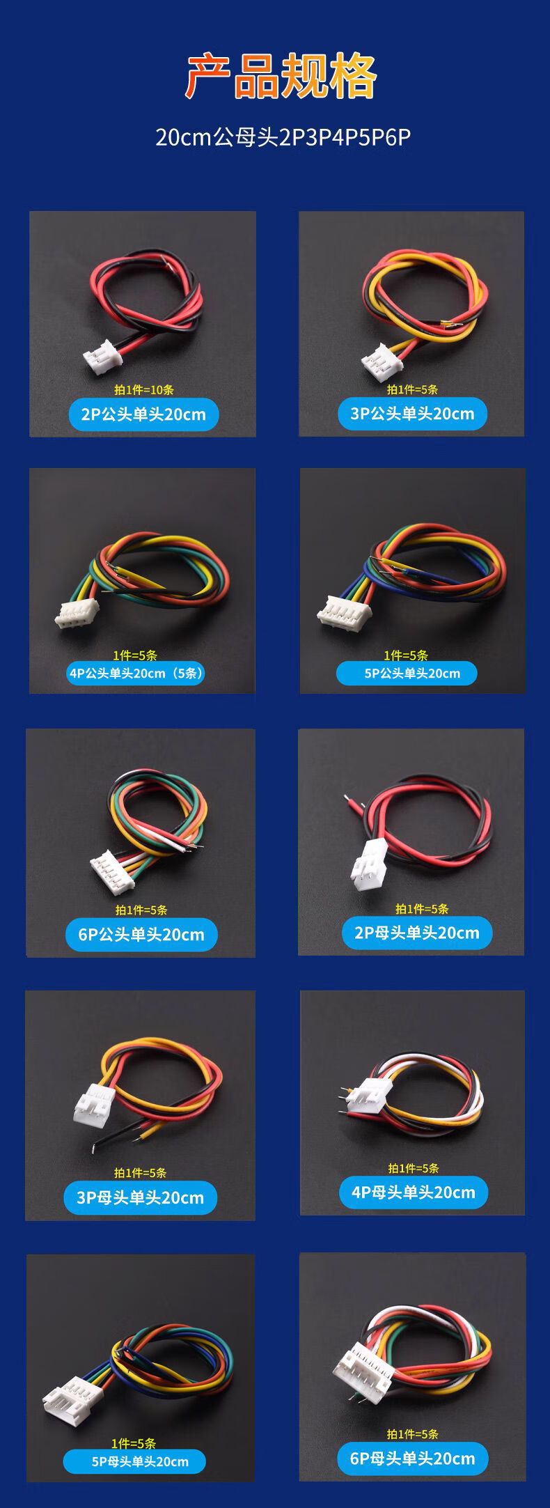 Zejie PH2.0 electronic cable connecting cable terminal cable 2P3P4P5P6P male and female head air docking cable 2P female head single head 20cm (5 pieces)