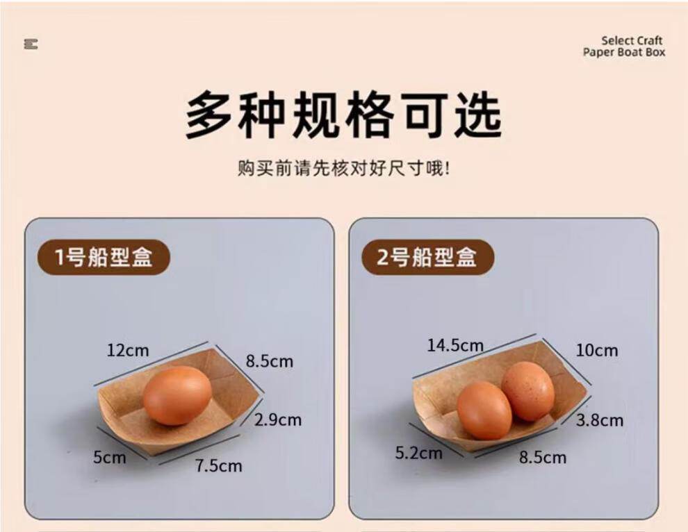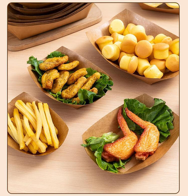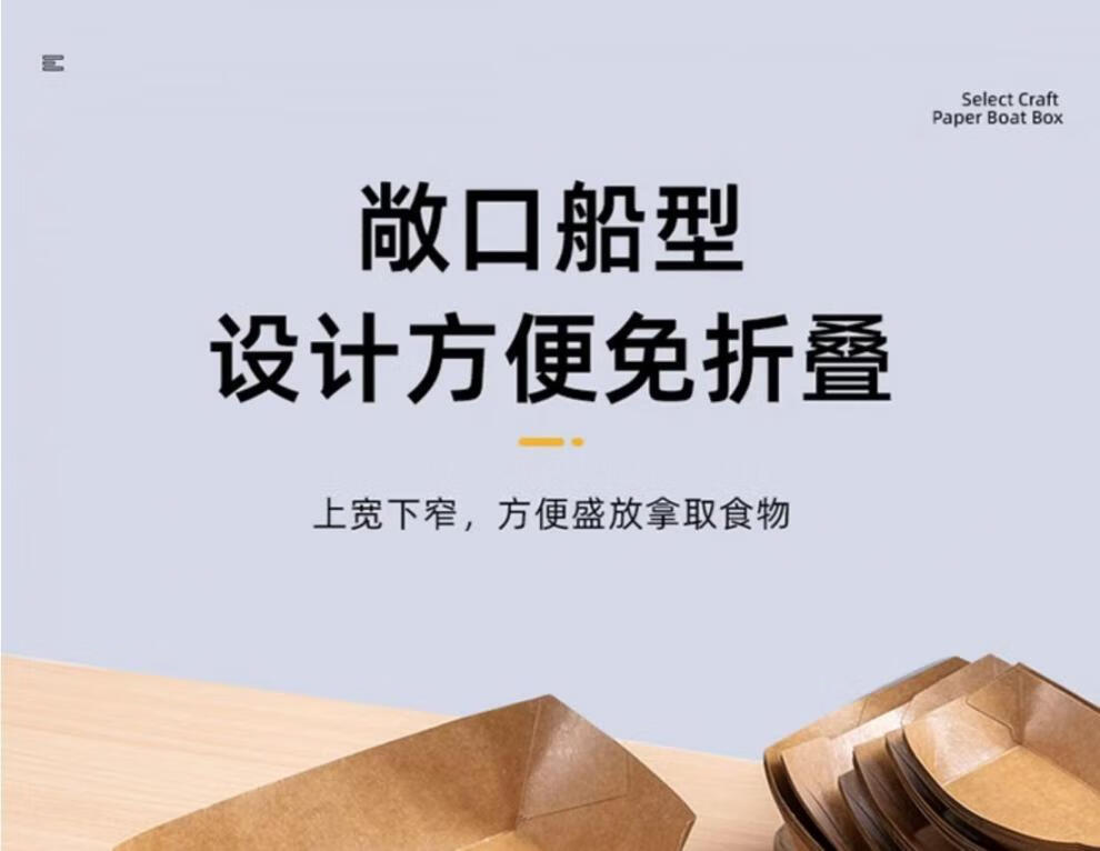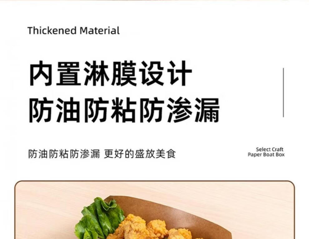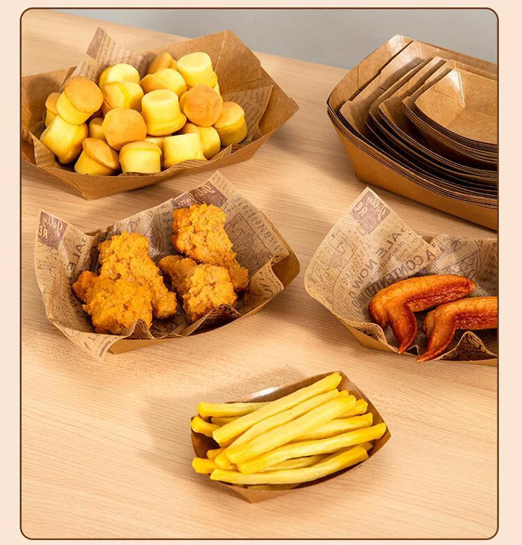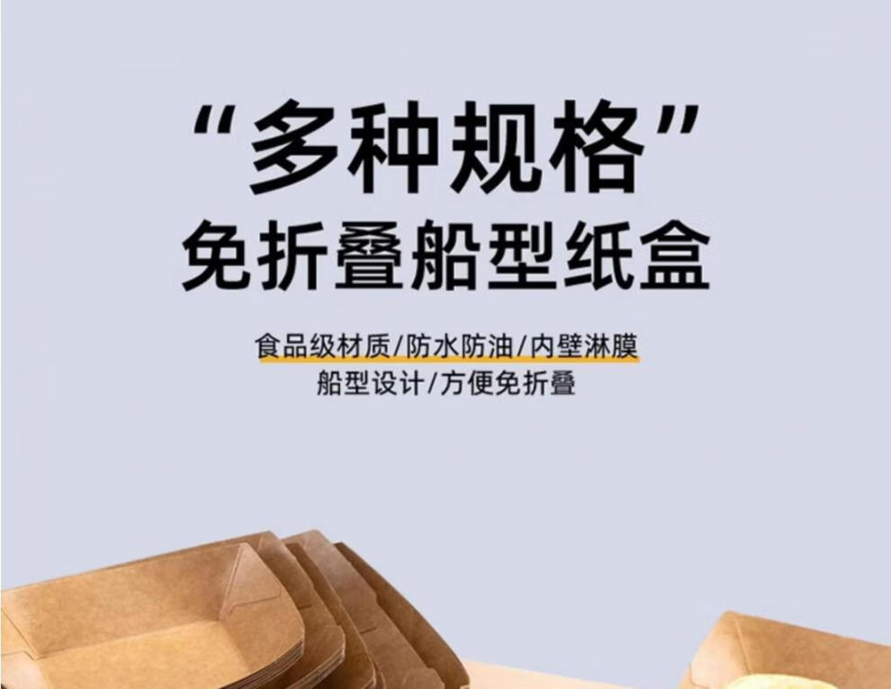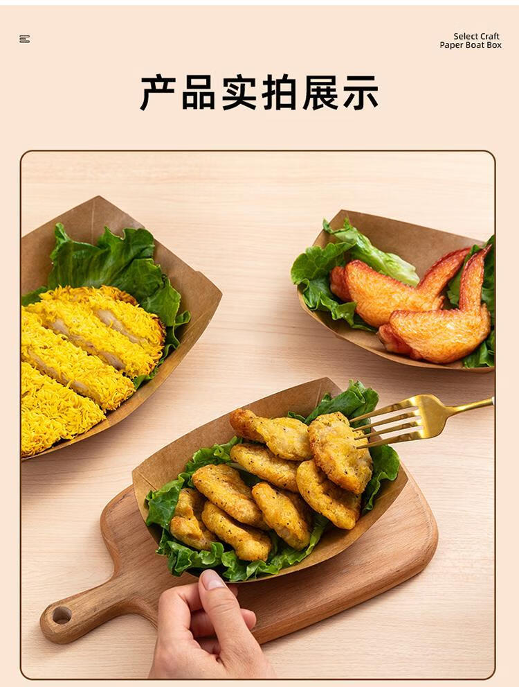 Chaosihui fold-free kraft paper ship box disposable lunch box open tray French fries fried chicken snack packaging box fried skewers plate No. 1 ship box thickened 200 pieces