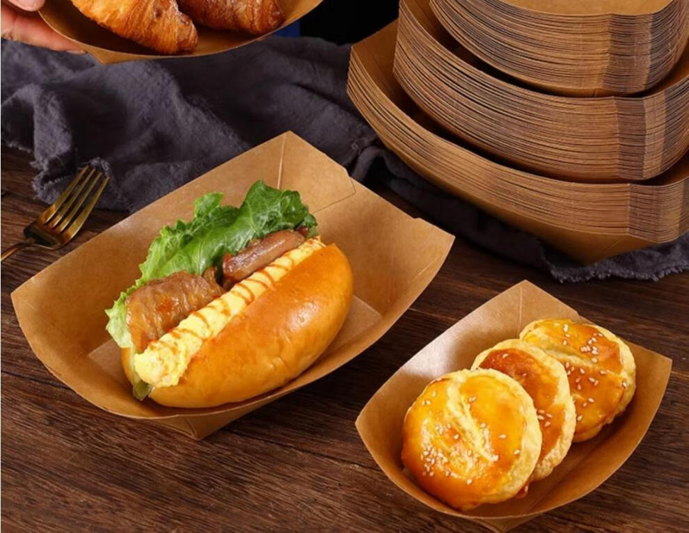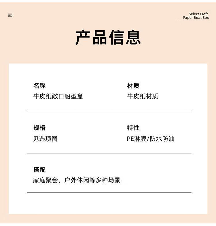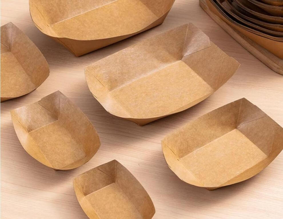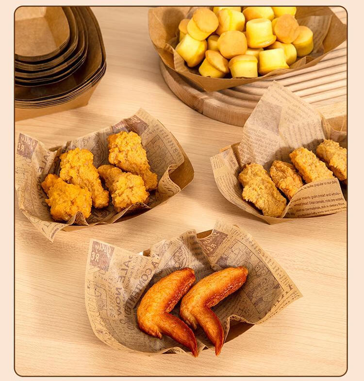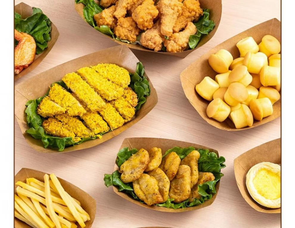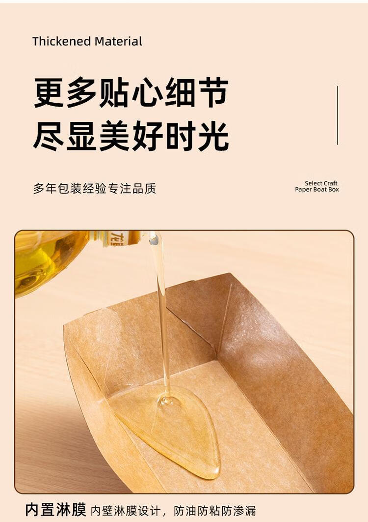 Chaosihui fold-free kraft paper ship box disposable lunch box open tray French fries fried chicken snack packaging box fried skewers plate No. 1 ship box thickened 200 pieces