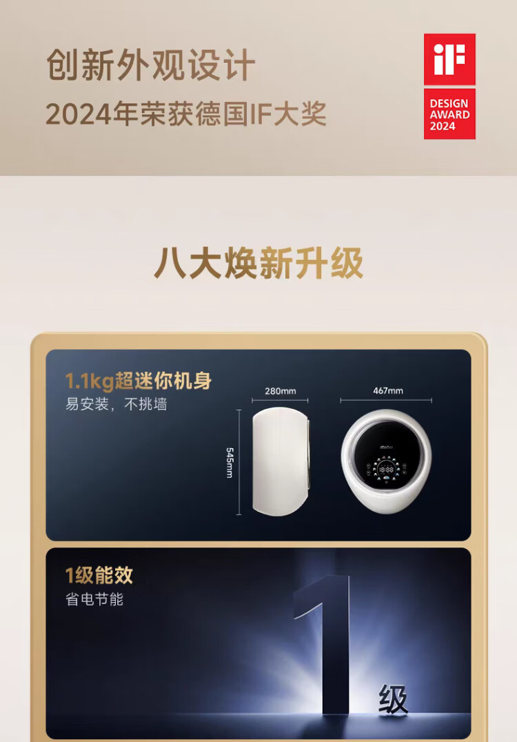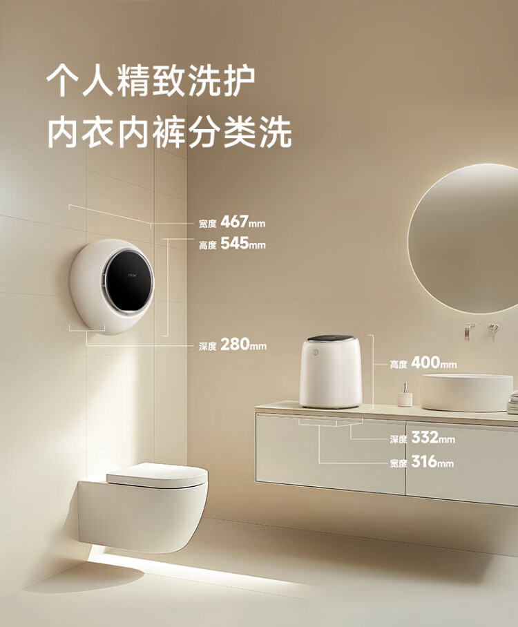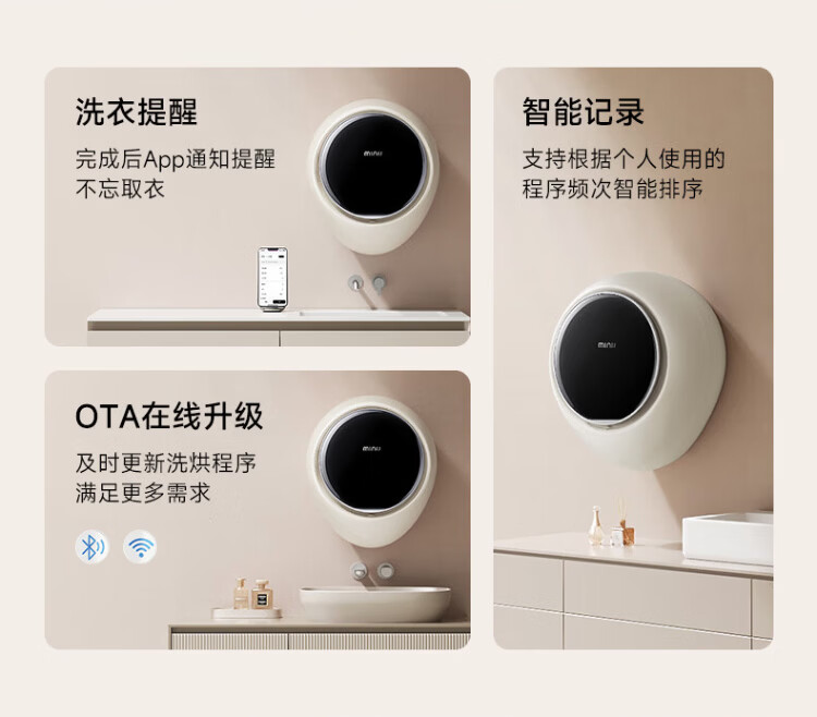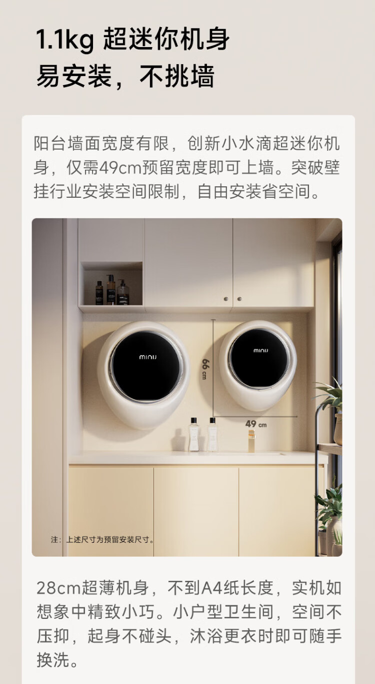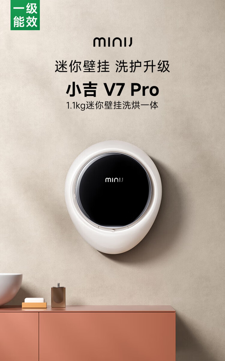 MINIJ 1.1kg mini wall-mounted maternal and child washing machine, integrated washing and drying, first-class energy efficiency, APP control, fully automatic intelligent frequency conversion, first-class energy efficiency, small water droplets, UV + smart investment V7-XTY Pro space silver