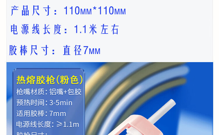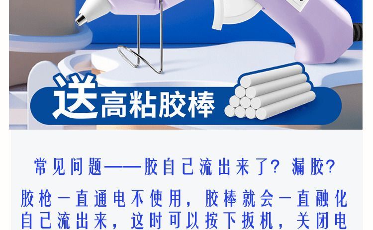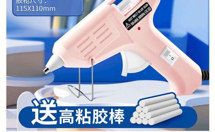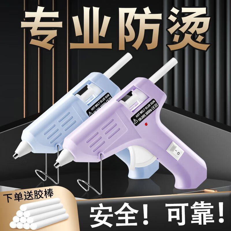 Hot melt glue gun for student dormitories, handmade diy tools, kindergarten children's anti-scalding hot melt glue gun, plug-in type, home style 20 watts, princess powder, aluminum mouth + rubber-coated insulation, glue gun + 10 glue sticks