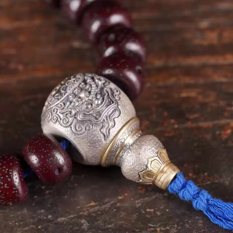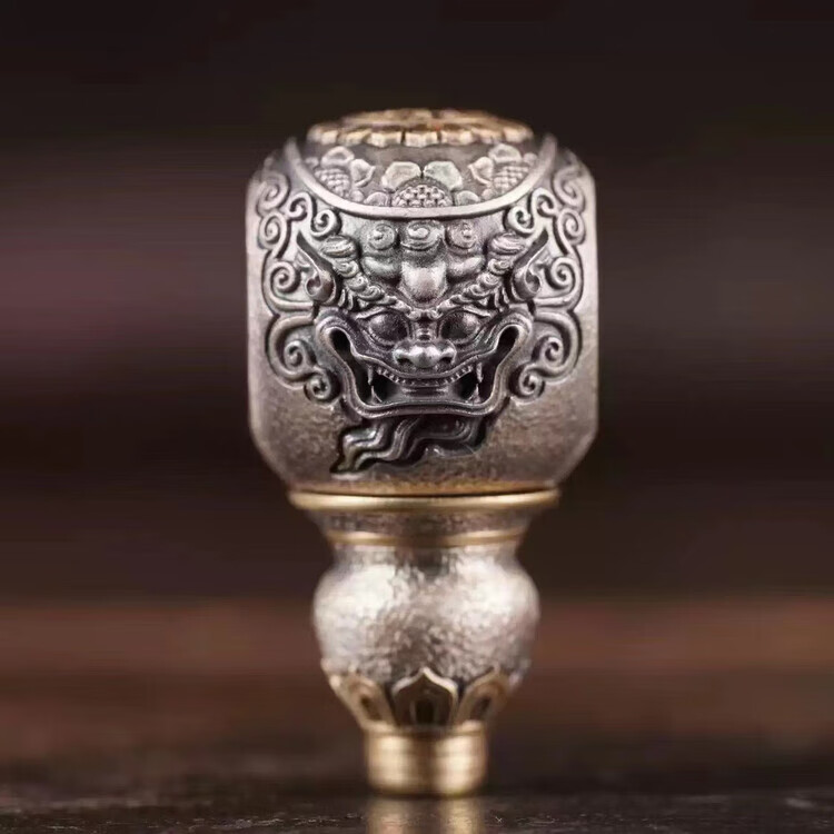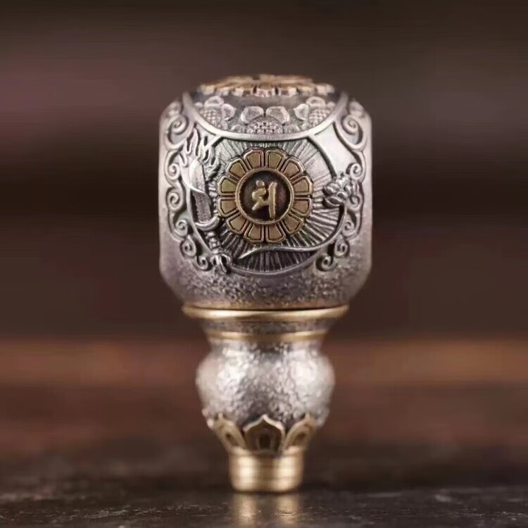 S925 sterling silver Wenwan three-way split Buddha head Amaro classic style wonderful auspicious three-way Buddha head bead string with 31mm height, 18mm thickness, pair of holes 15.5