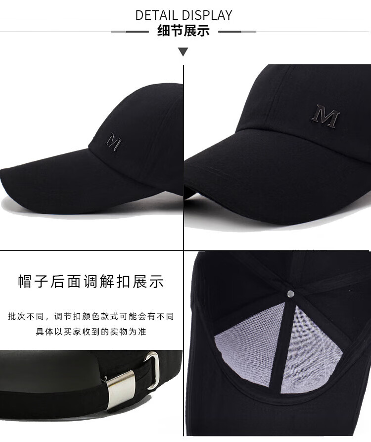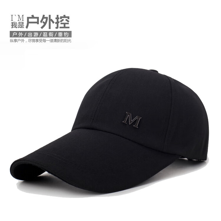 BOLSRO hat men's outdoor Korean baseball cap peaked cap sun protection sun hat fishing casual hat women M mark black one size fits all adjustable