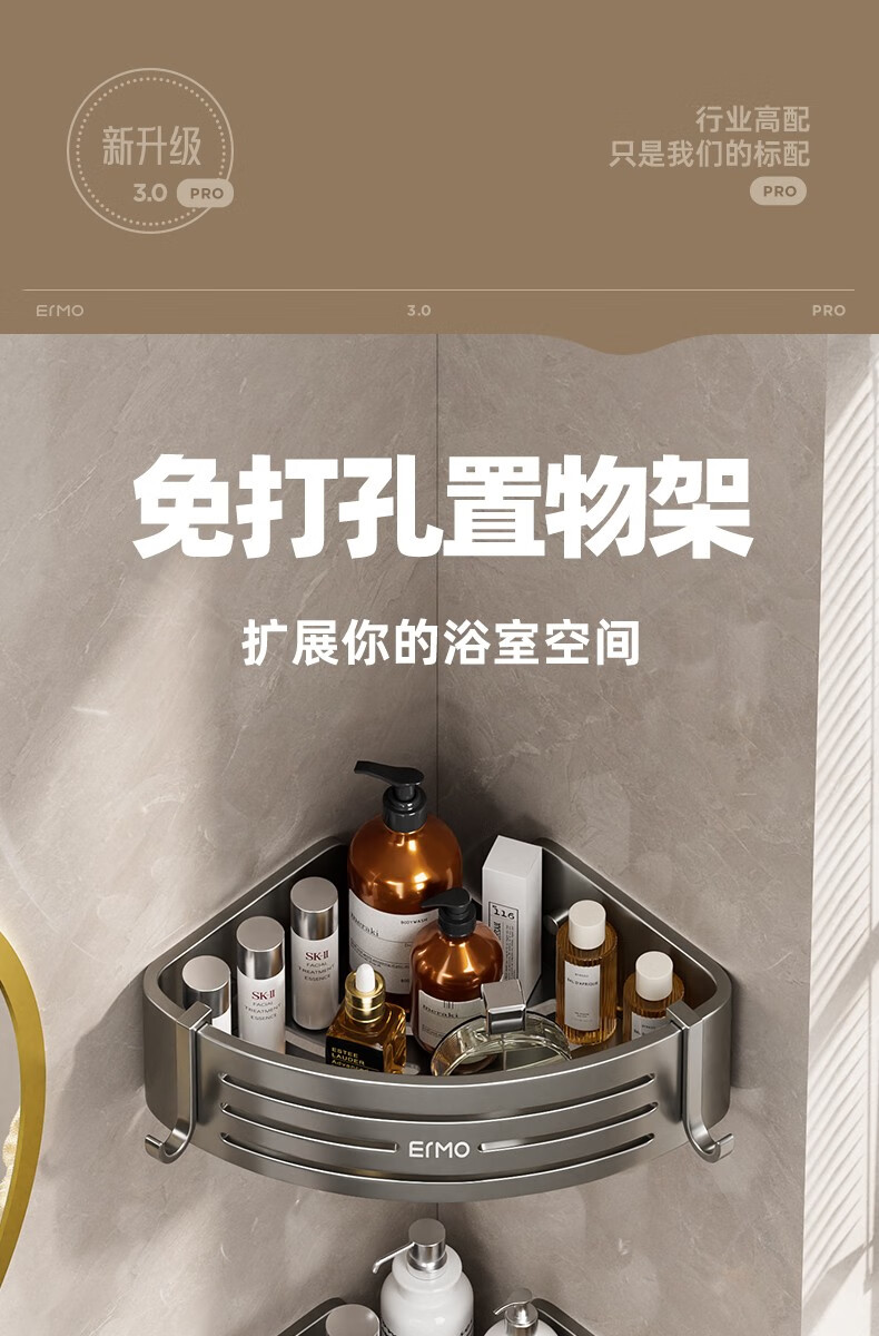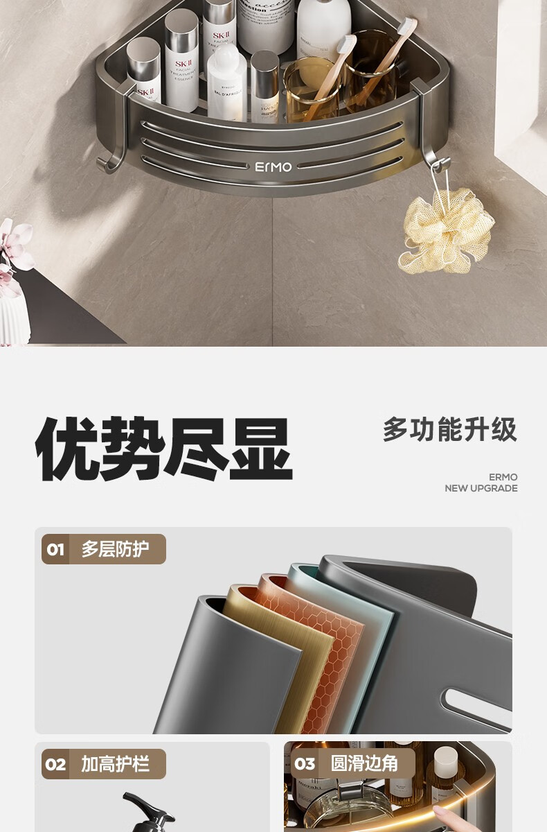 Ermo bathroom storage rack without punching holes in the toilet shower room bath and toilet wall-mounted corner bathroom shelf. Multi-layer more affordable, taller and thickened three-layer triangular basket-