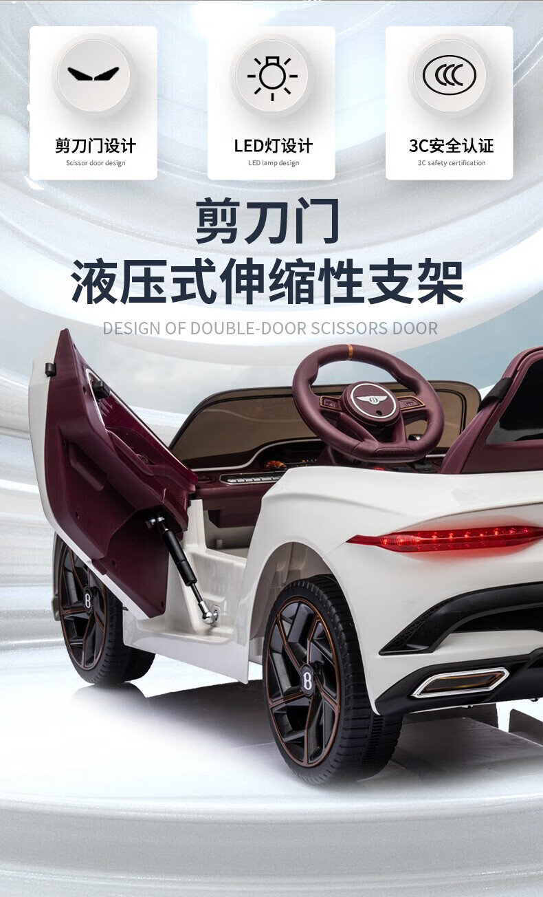 Mother and baby Bentley children's electric car four-wheel car for men and women with remote control swing toy car that can sit on one person's first birthday gift dual drive white + independent swing + hydraulic double door