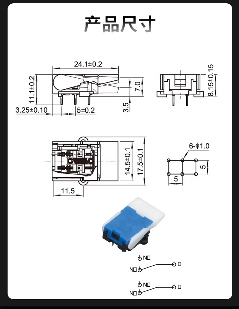 Zejie telephone reed switch hang-up reset micro switch building intercom doorbell reed switch 6 pins black and blue (printed HAIOU) (5 pieces)
